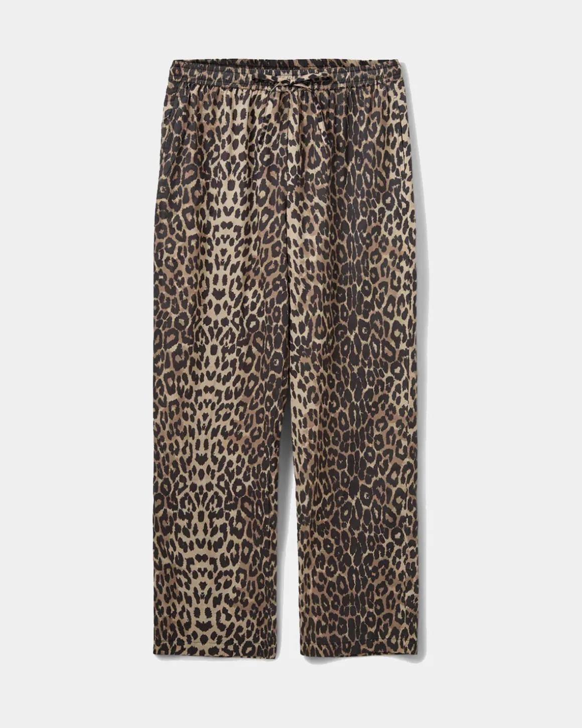 Loose pants with leopard print. The pants have a tie waist and a loose-fit silhouette. Made of 100% cotton.