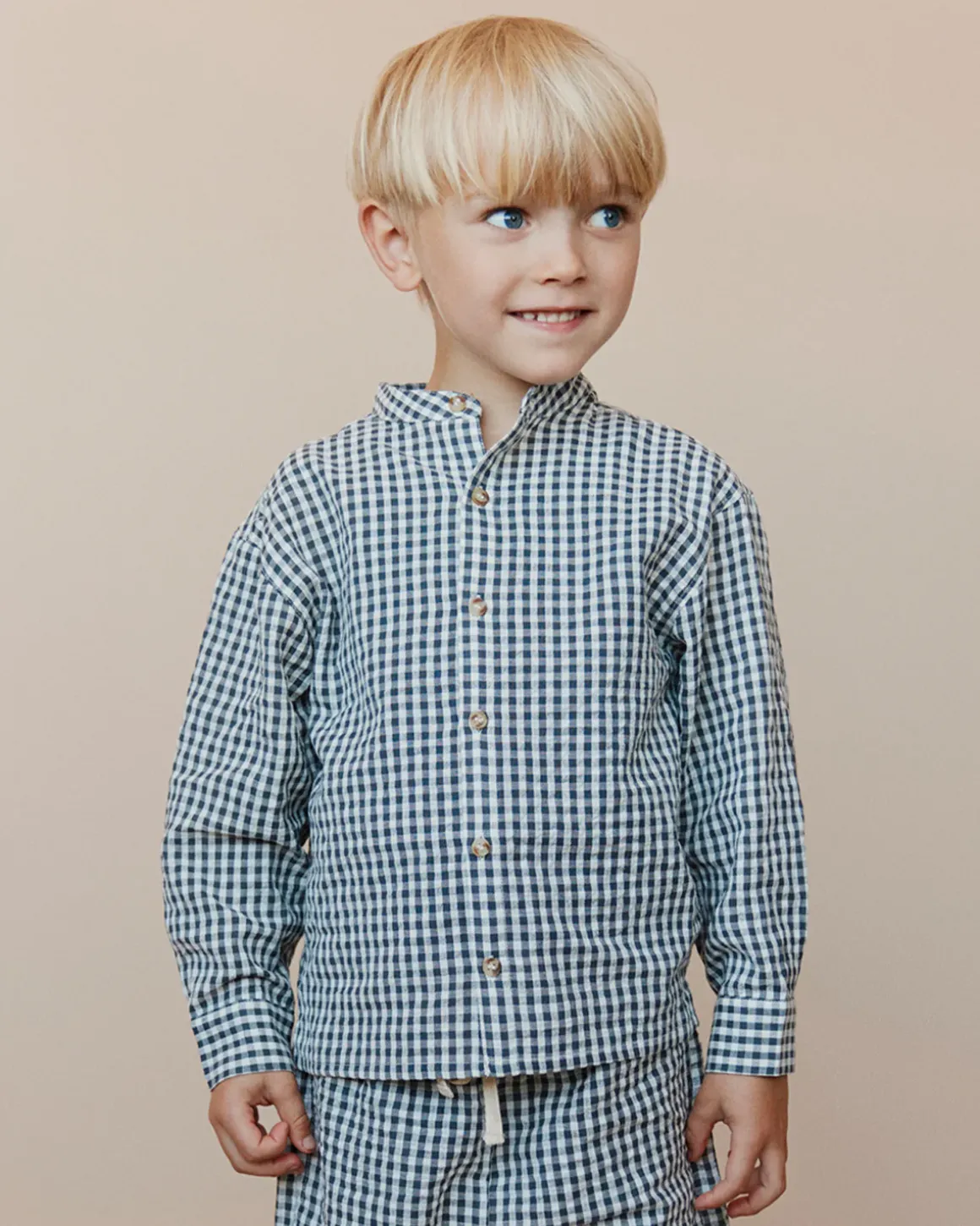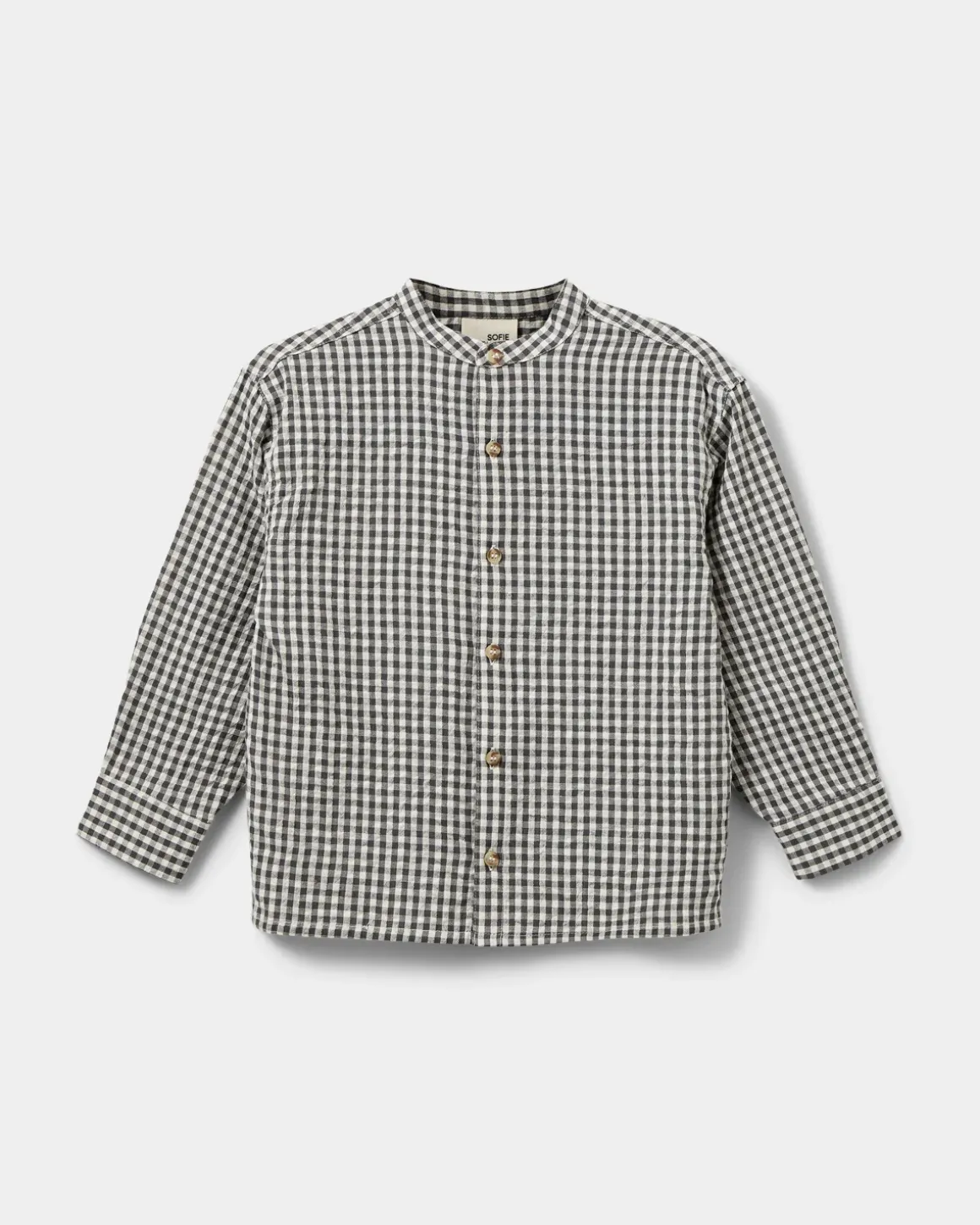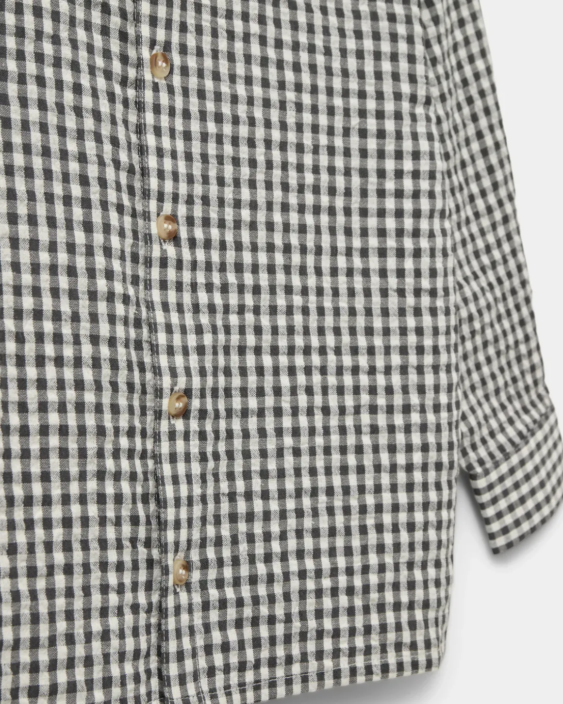 Fine checkered shirt in black and white. The shirt has a button closure at the front and a round neckline. Made of 100% cotton.