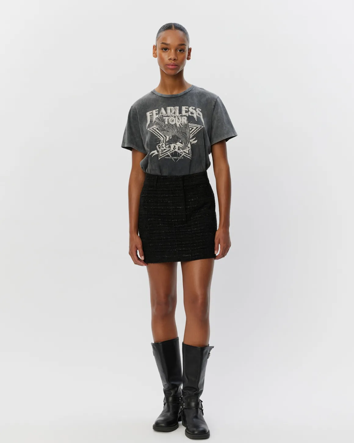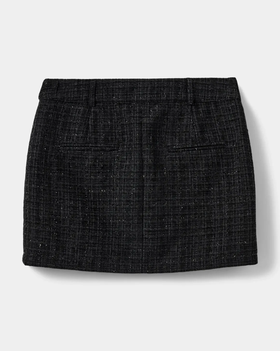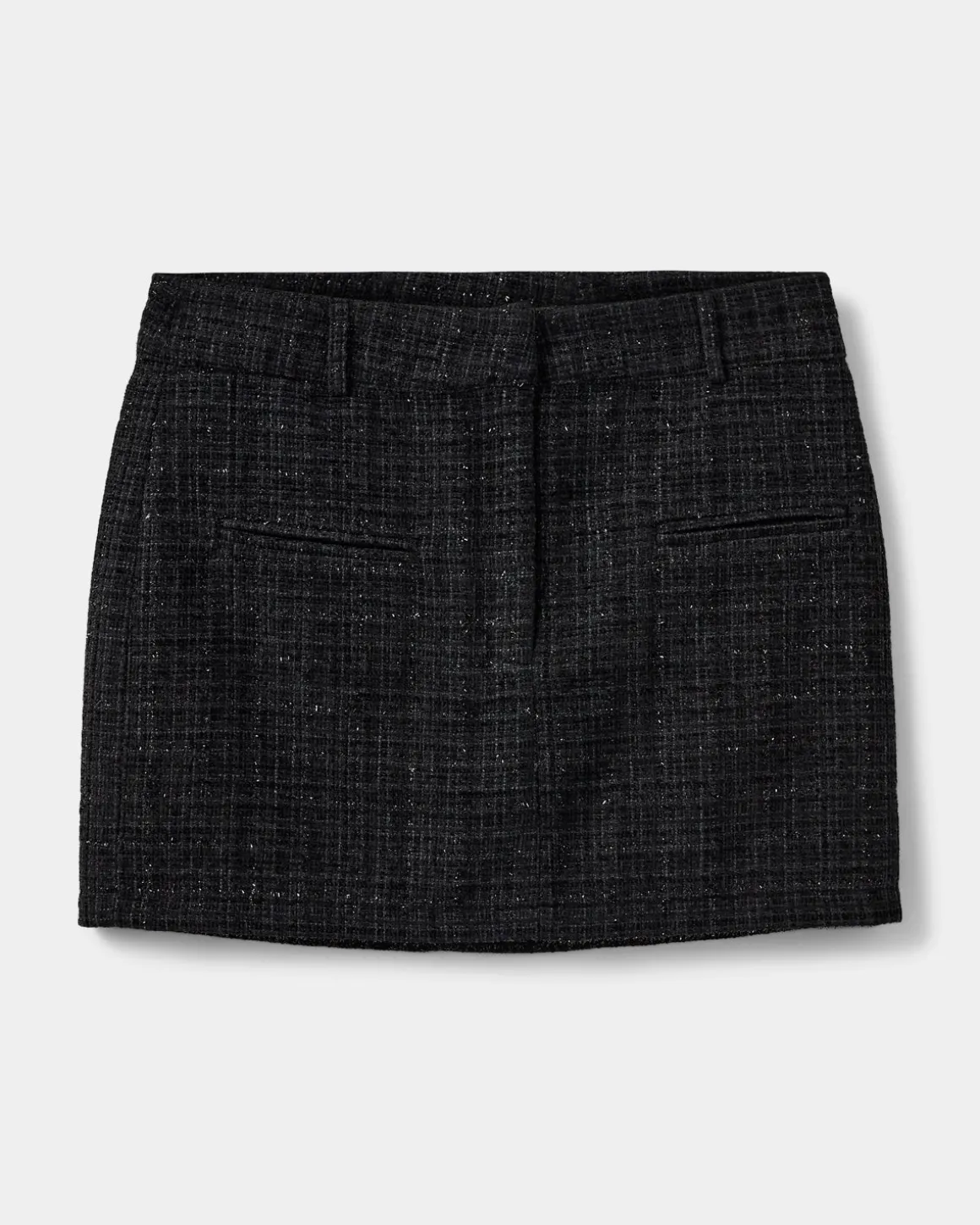 • The skirt is designed with fine silver glitter details and small pockets in the front which add a practical and stylish touch that makes the skirt both functional and modern.