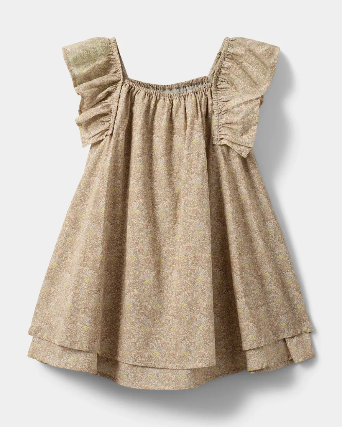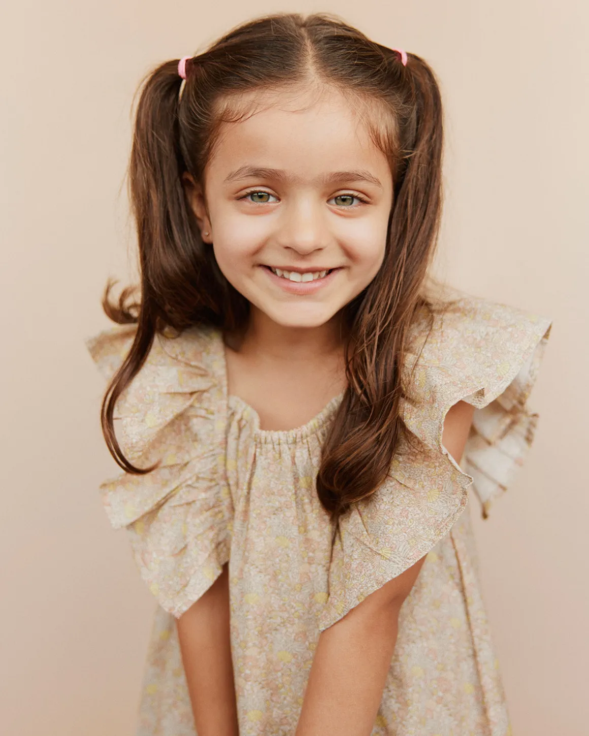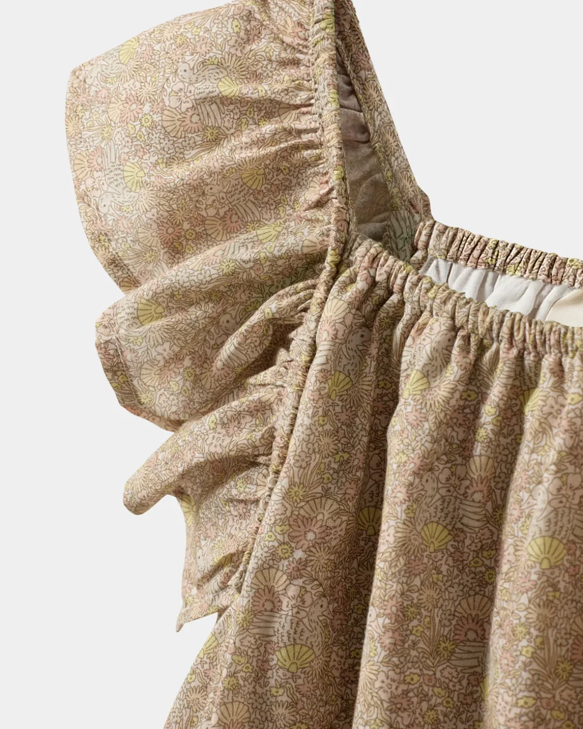 • Loose fit with elastic shoulder straps, short ruffle sleeves, and a ruffle trim at the bottom