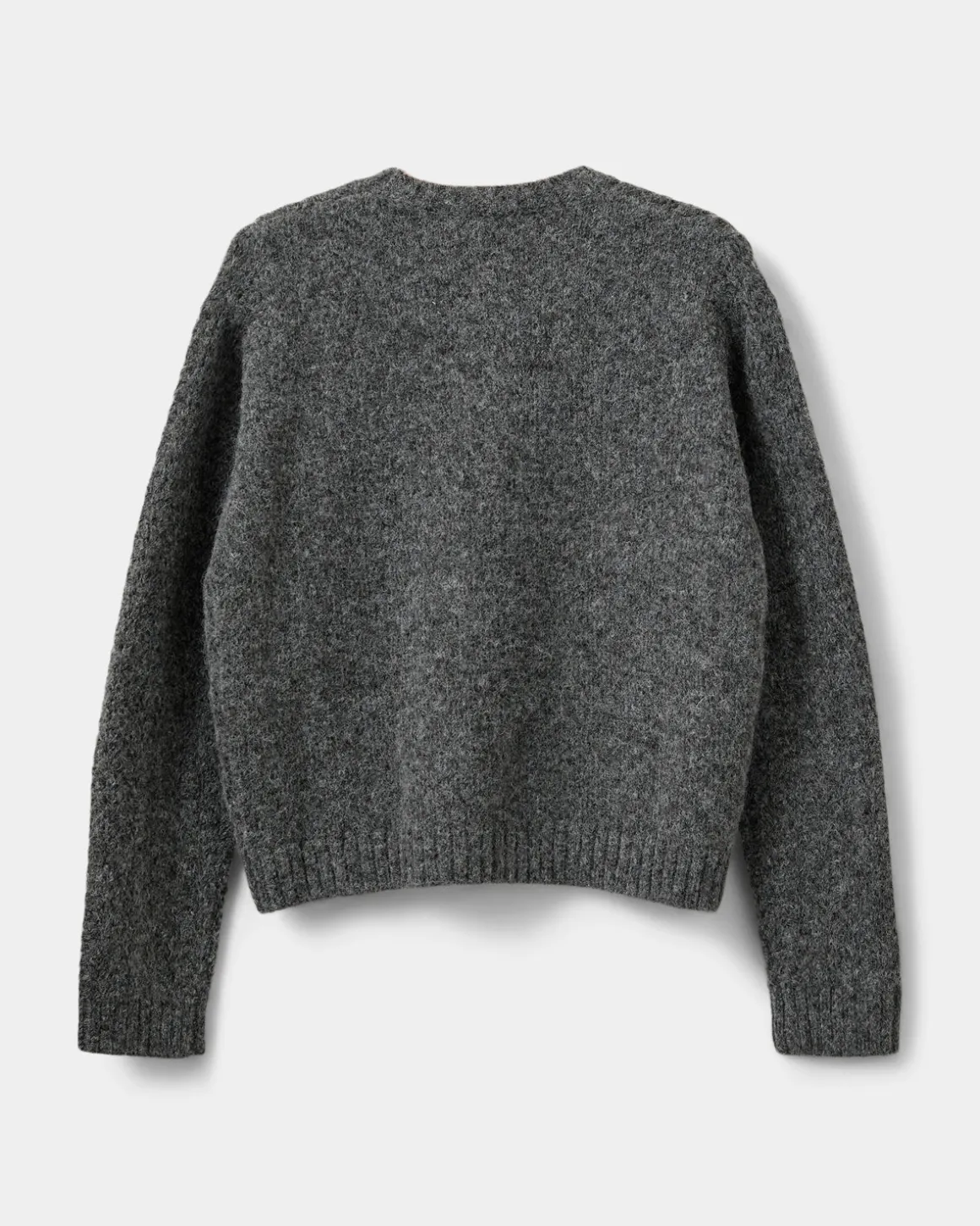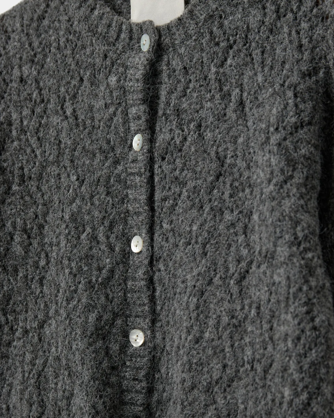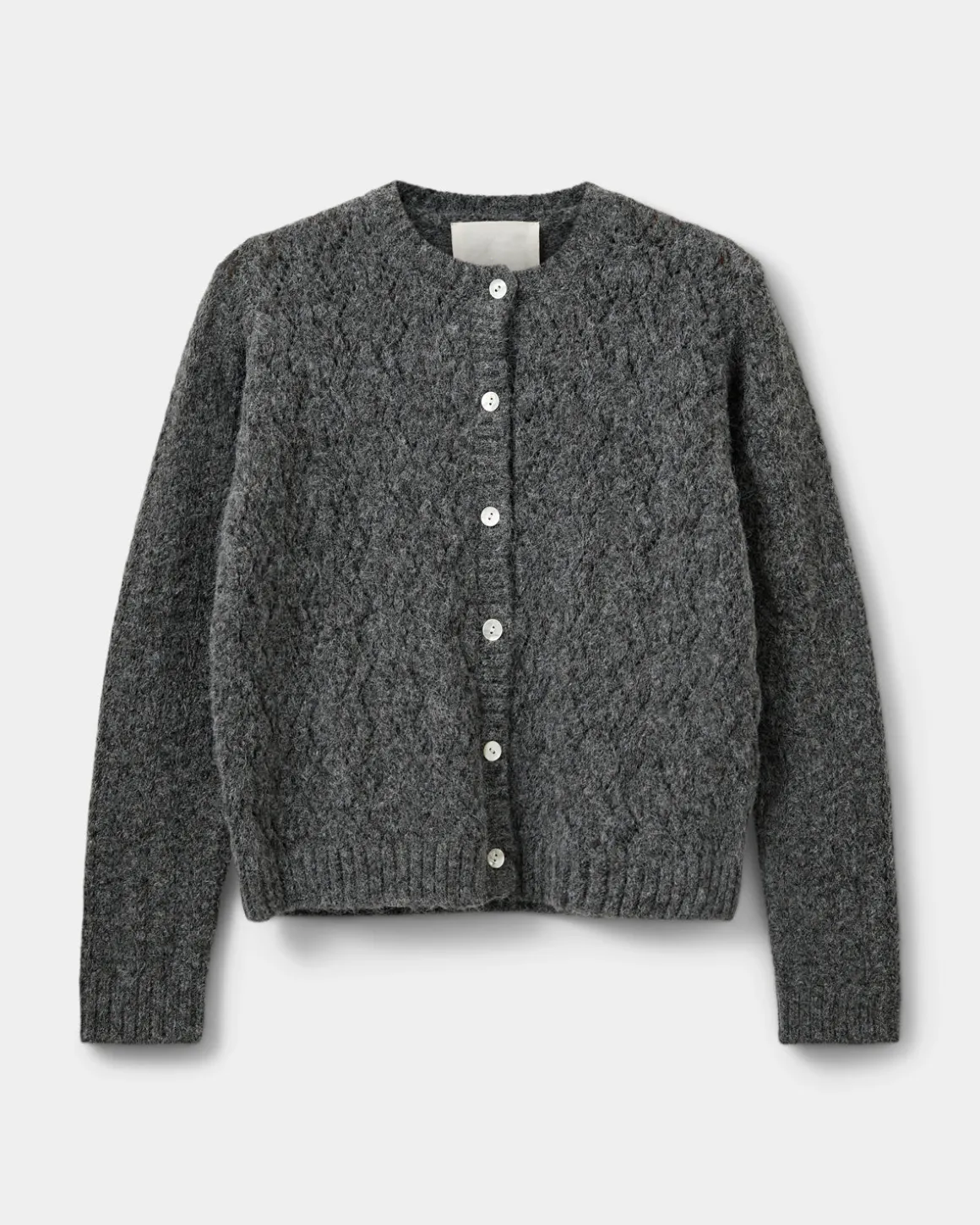 • The cardigan is designed in a warm wool blend that provides both comfort and warmth.