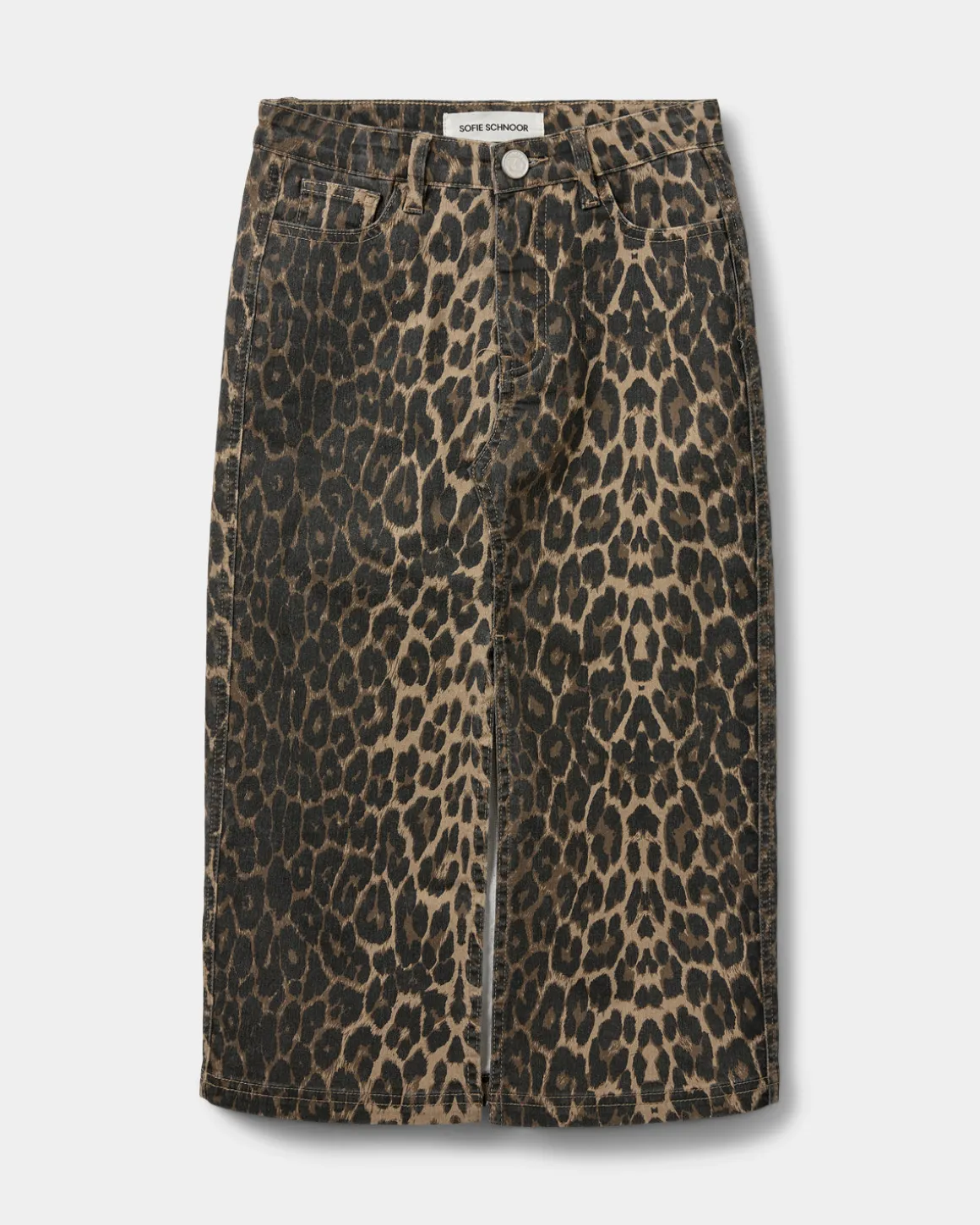 Skirt with leopard print. The skirt has a zip and button closure at the front as well as a front slit. Made in a luxurious cotton blend with stretch.