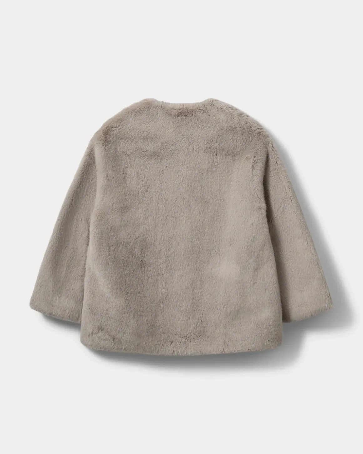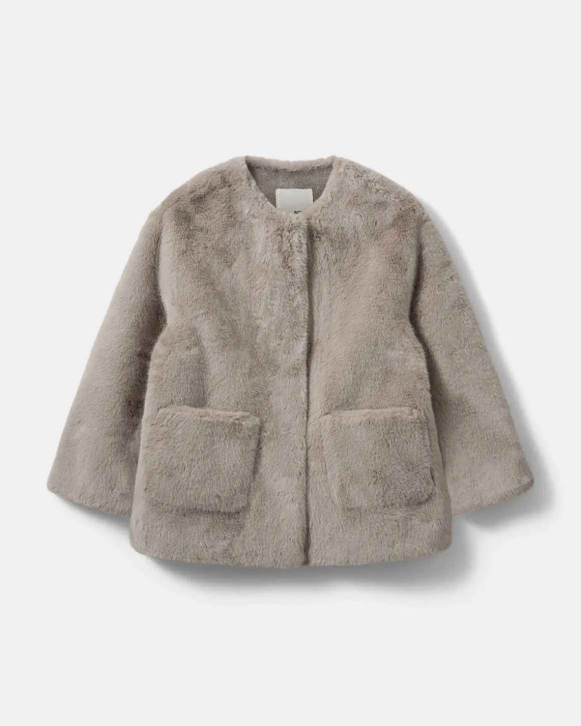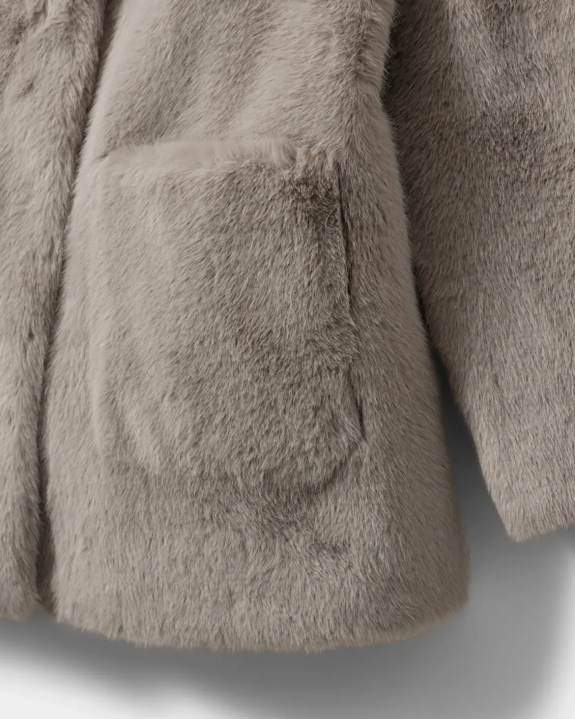 • The jacket is designed in 100% polyester, which gives a soft, fluffy texture.