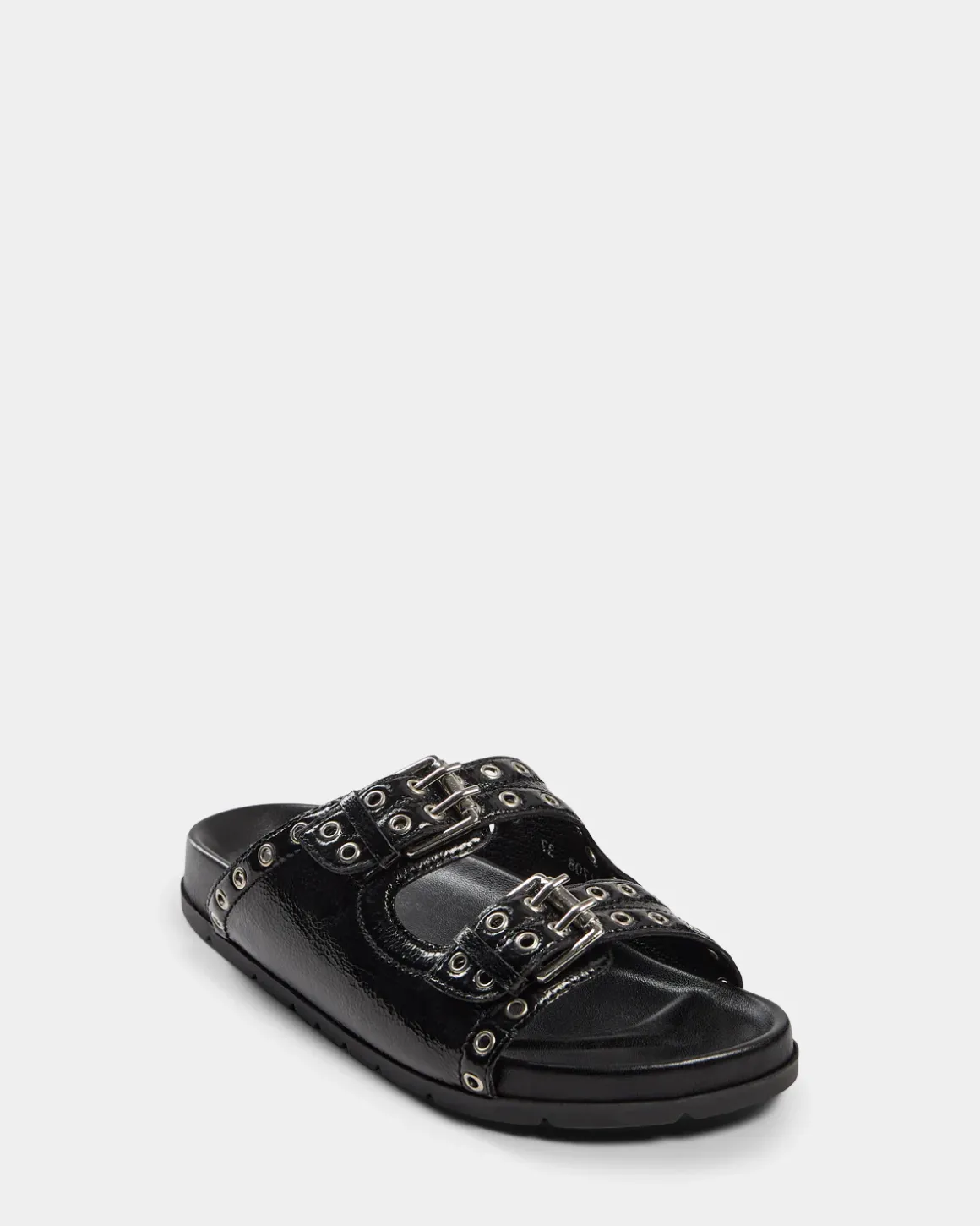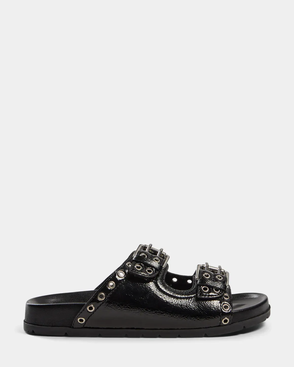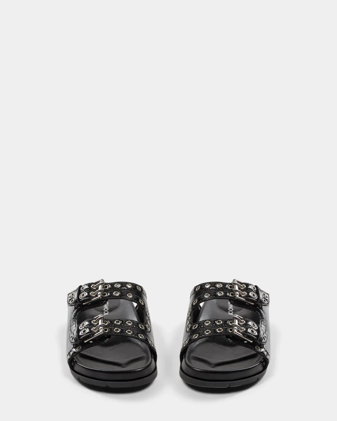 • Wide straps with silver studs and buckles