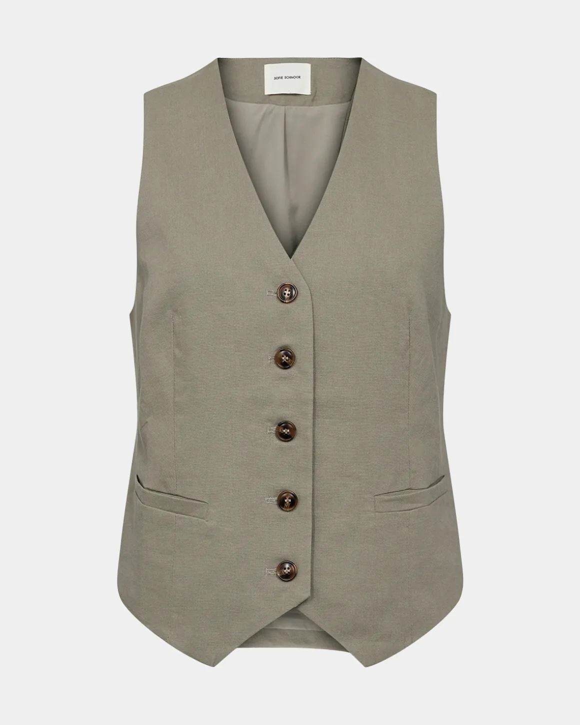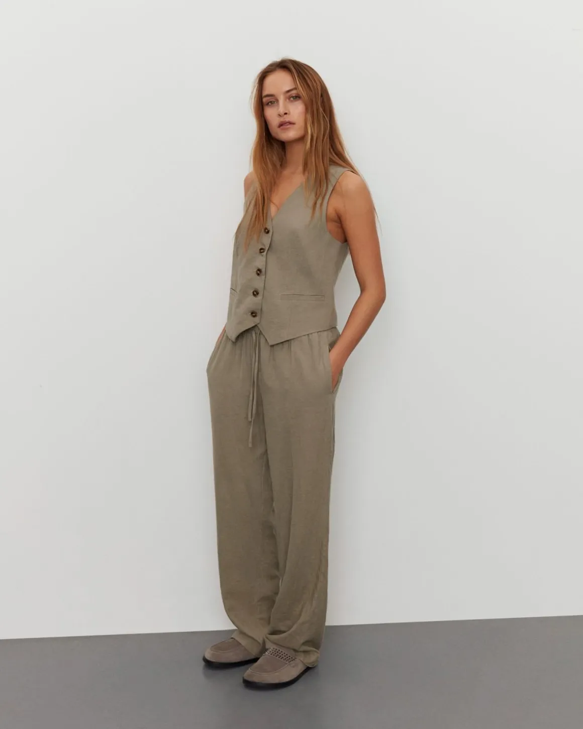 • Vest in khaki army with two cheat pockets and button closure on the front.