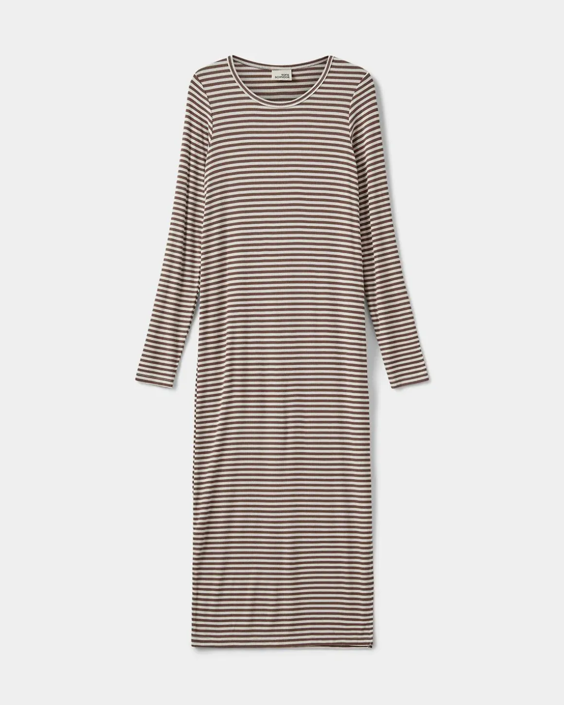• Long-sleeved maxi dress with stripes and round neckline.