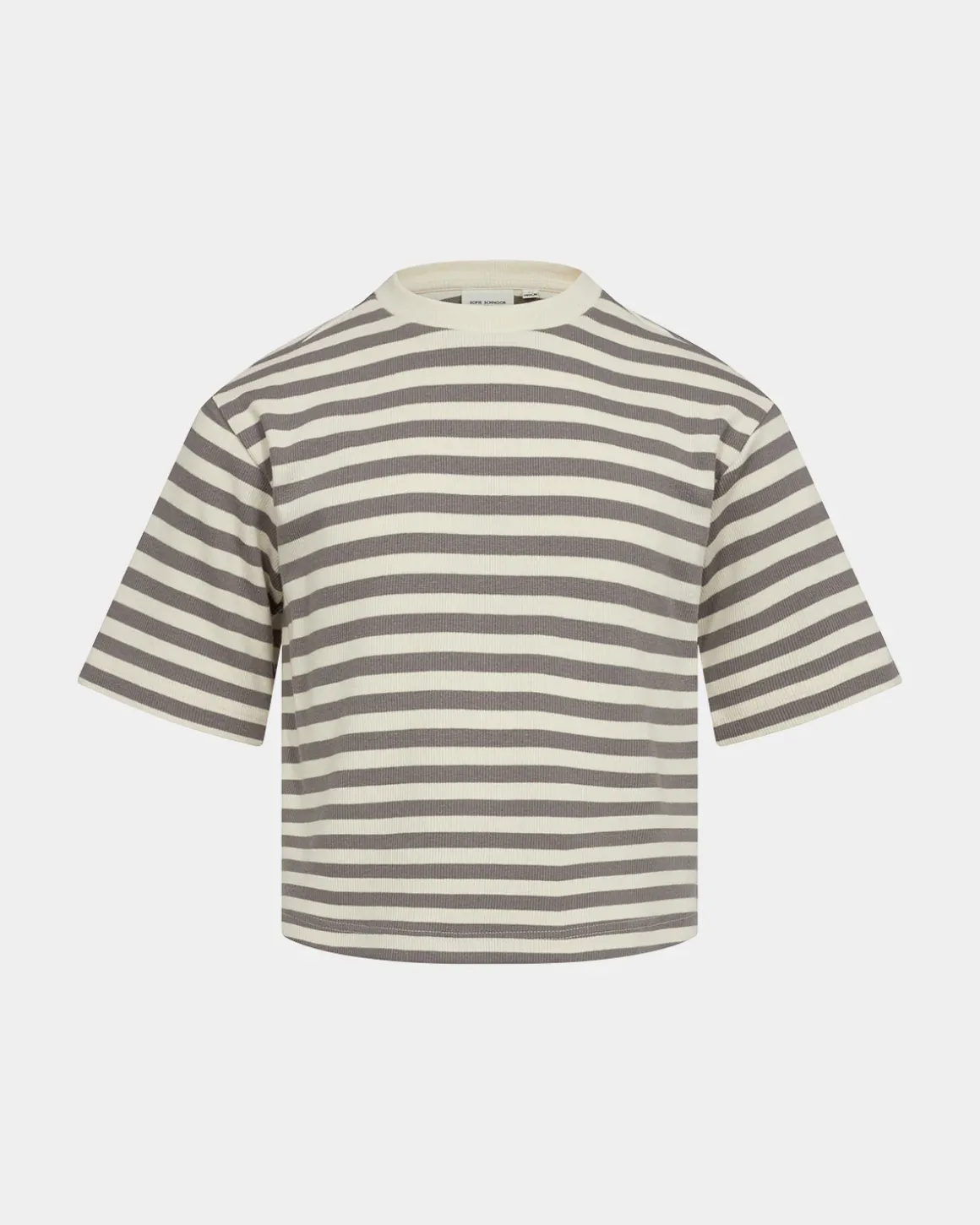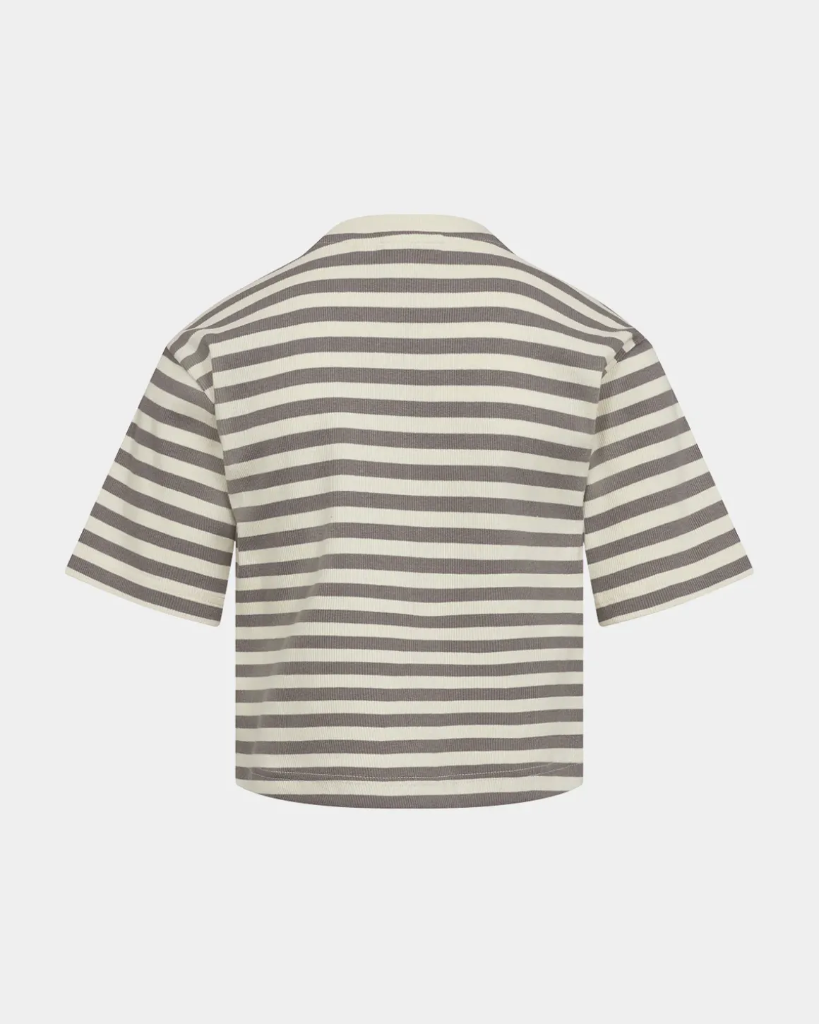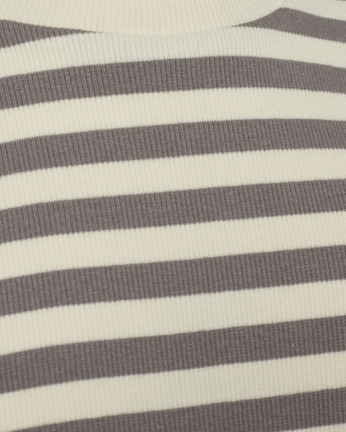 Striped cotton T-shirt in Steel Grey, with a short cut.