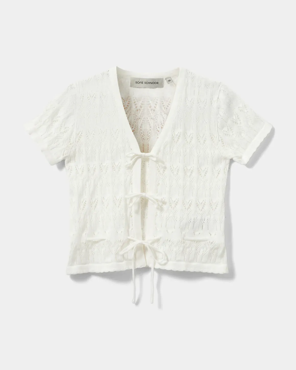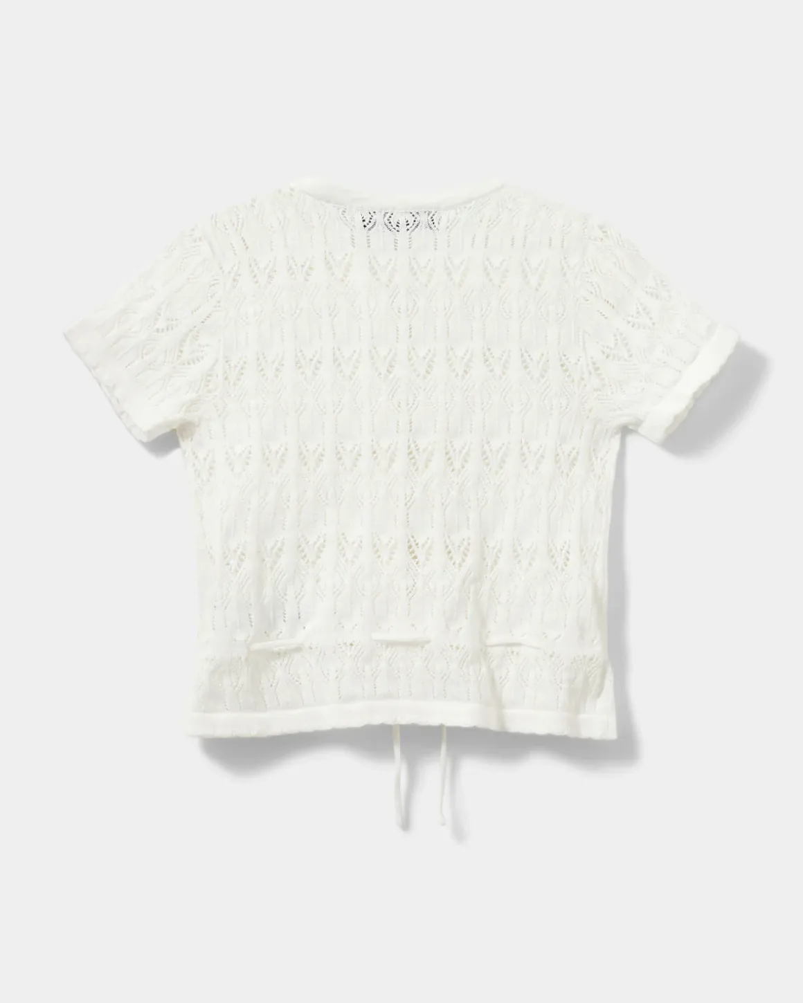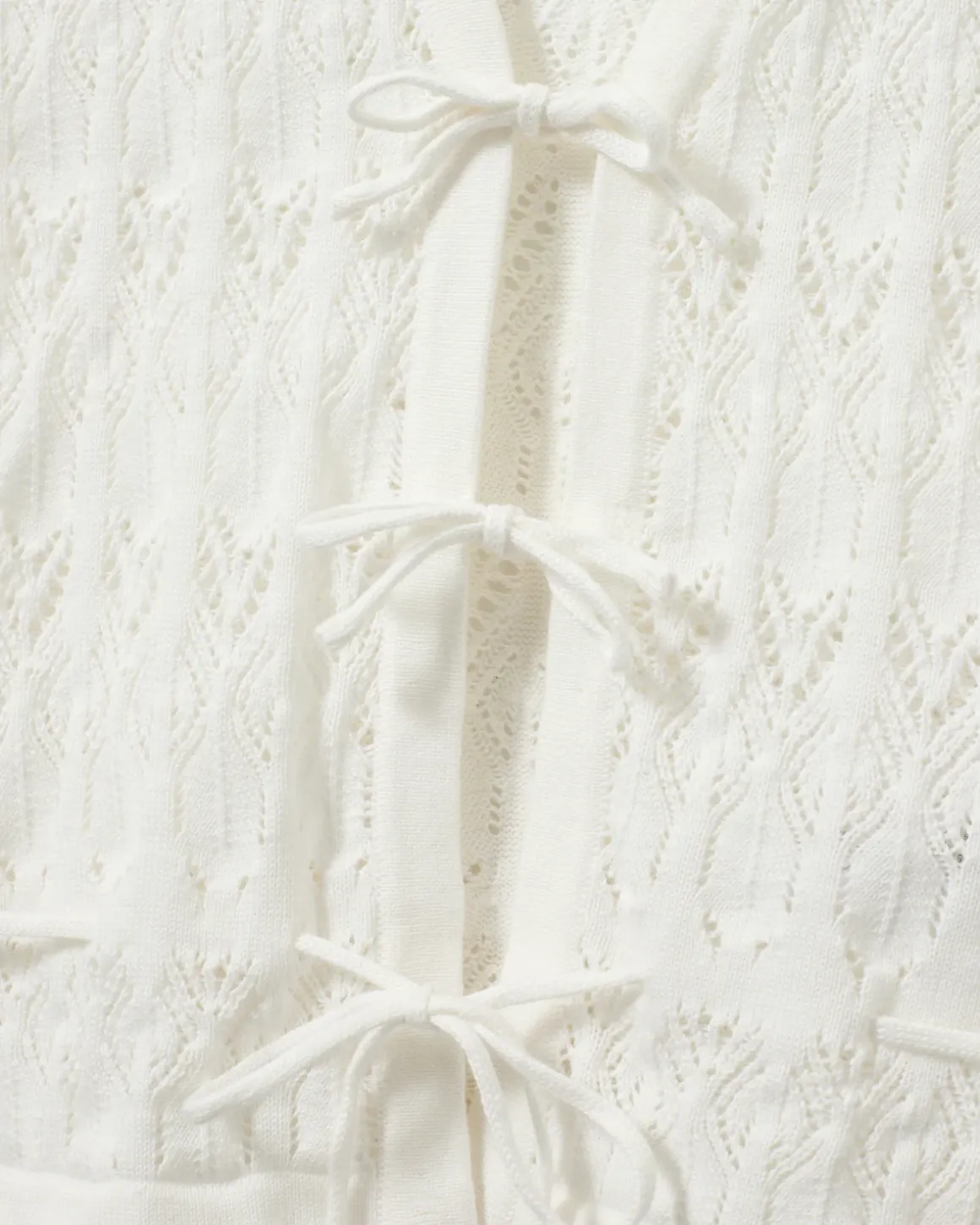 • Short-sleeved cardigan with pointelle pattern and tie front detail