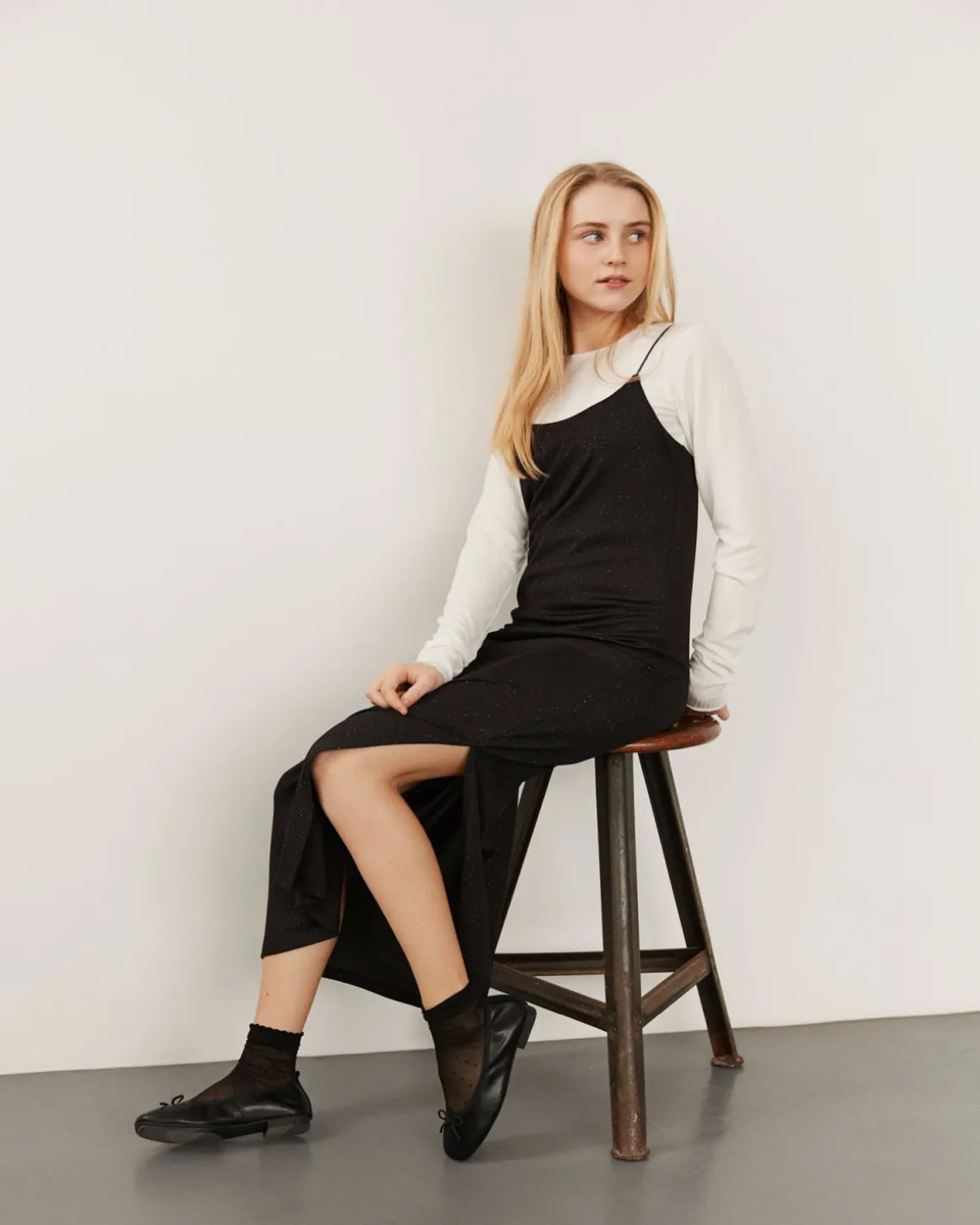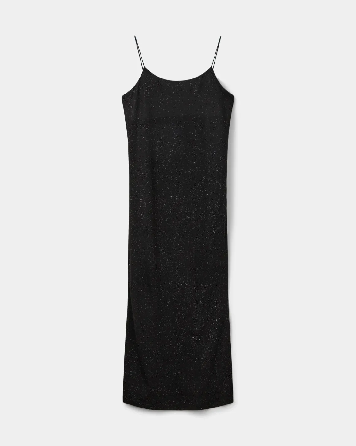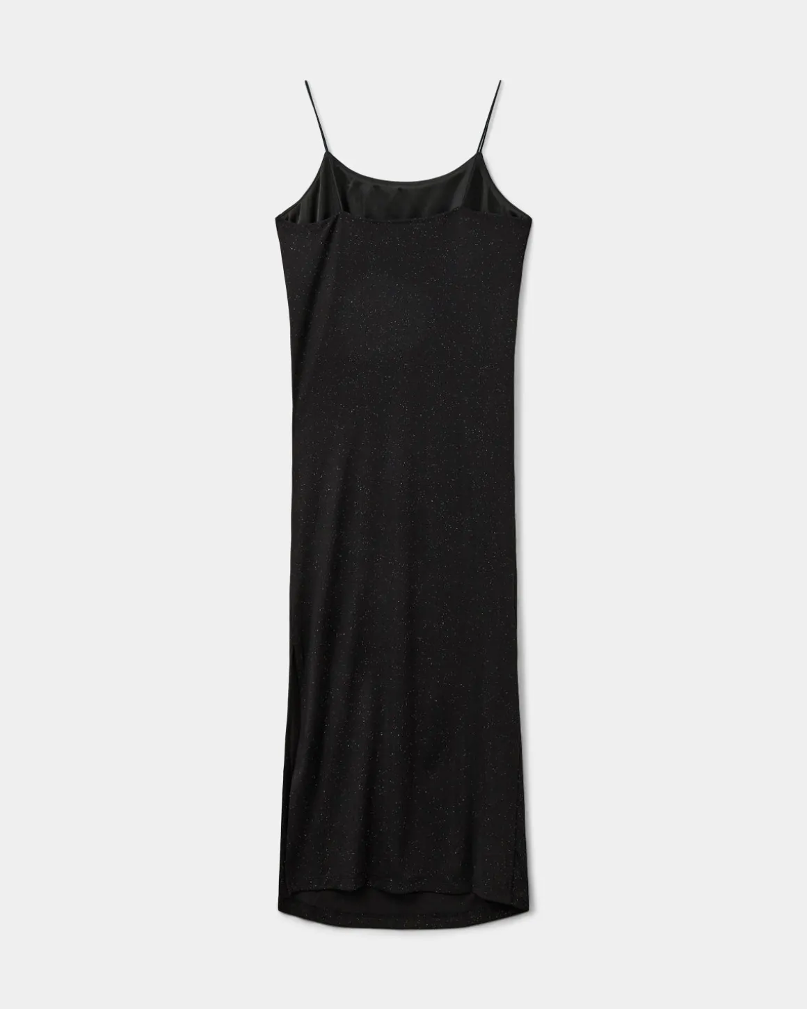 • The dress has thin straps and is designed in a blend of 90% polyester and 10% elastane, which provides a stretchy and comfortable fit.