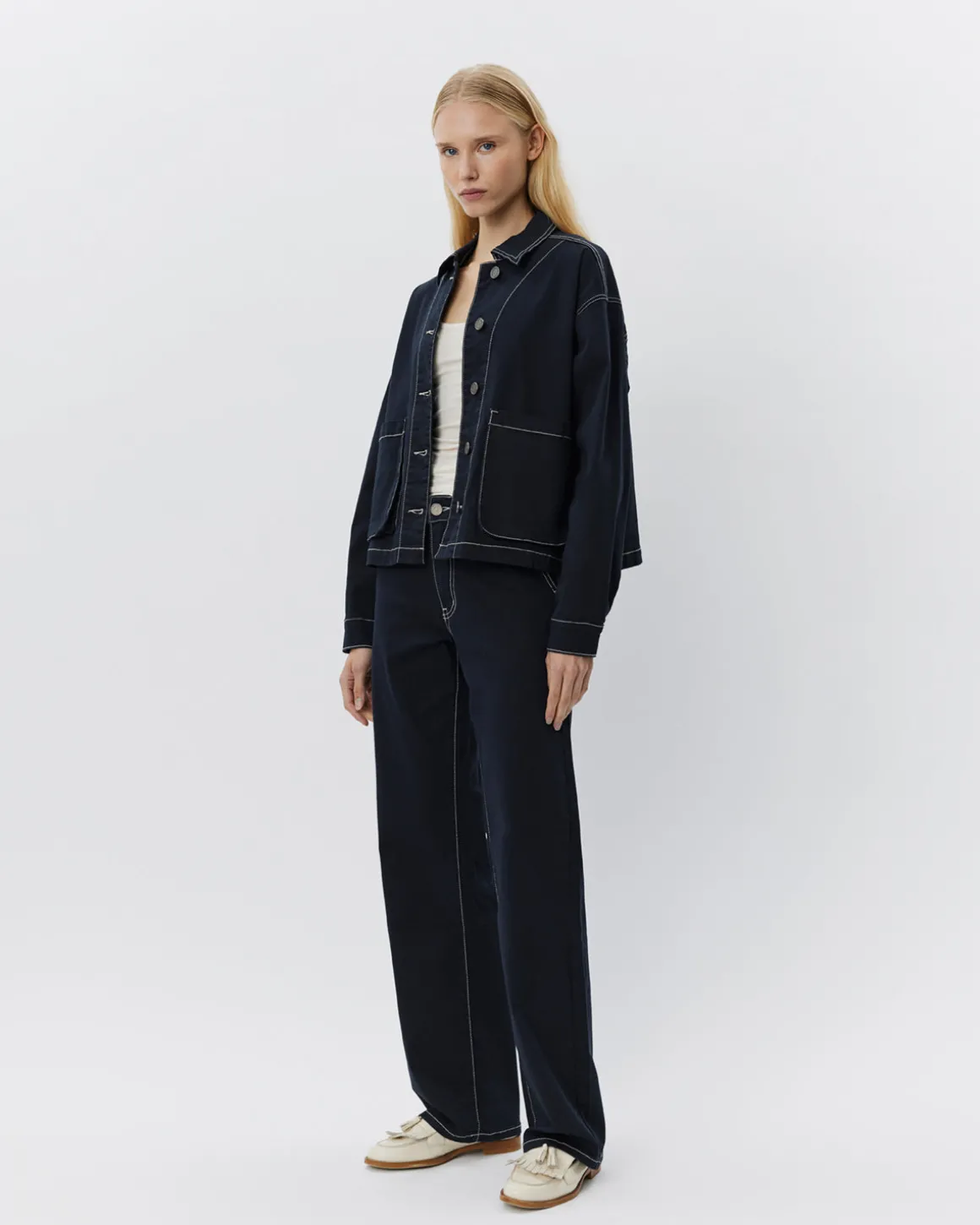 • The jacket has an elegant collar, button closure and practical pockets, making it both functional and trendy.