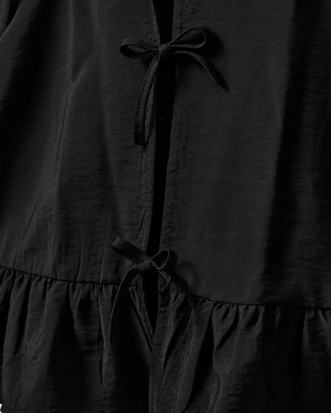 • The shirt closes in the front with three cute bows, which add a feminine and charming touch.