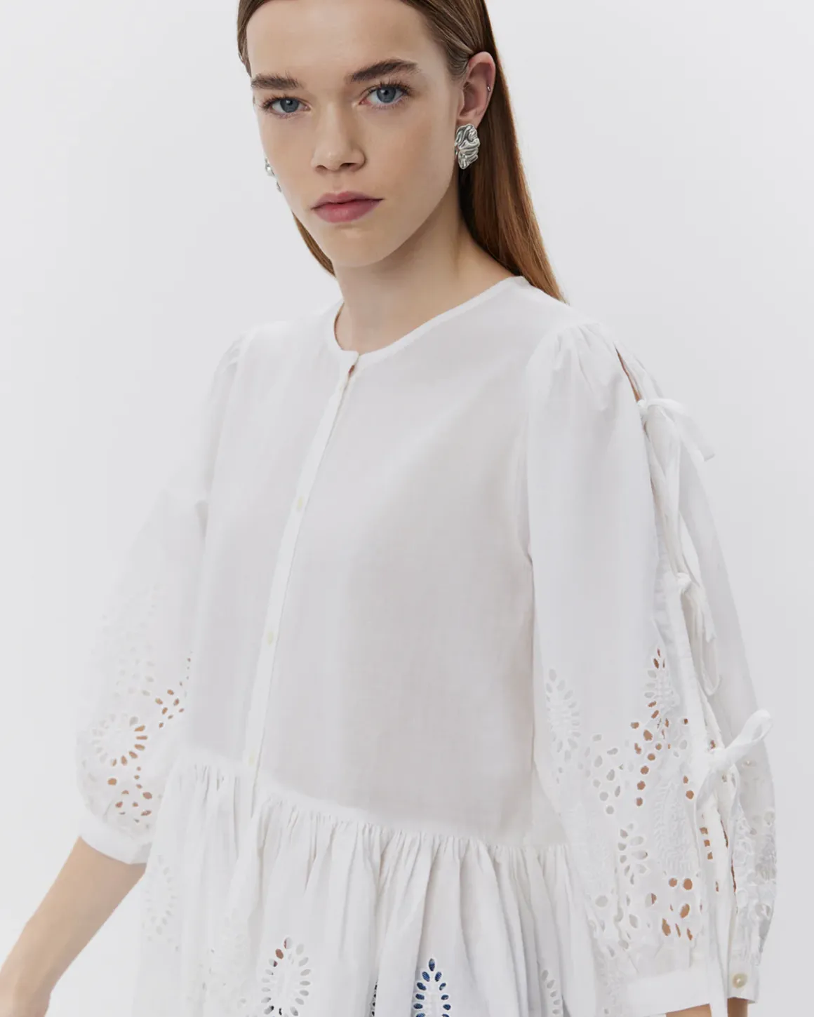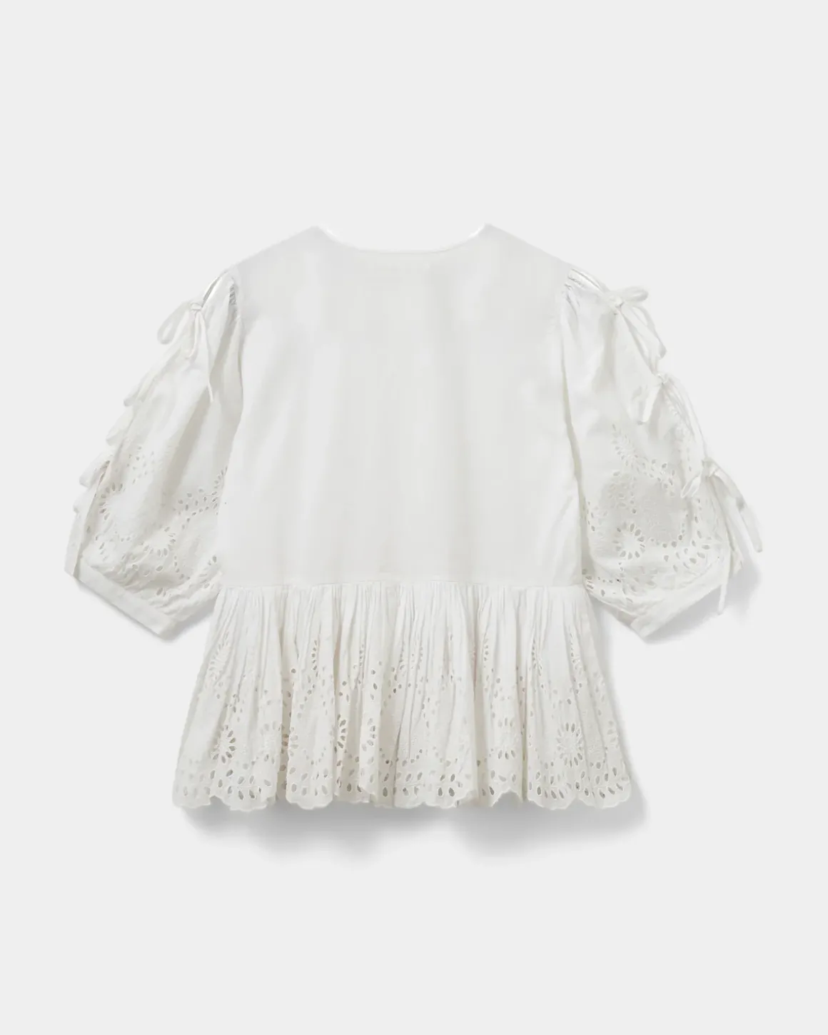 • Short puff sleeves with tie bands