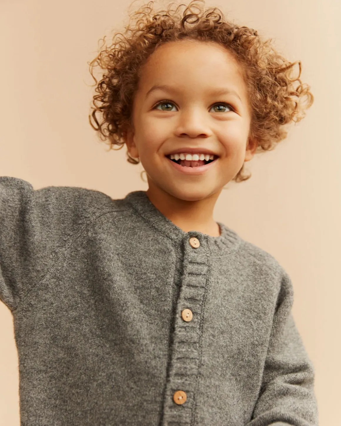 • The cardigan has a small zip detail and closes at the front with buttons, which gives a classic and stylish look.