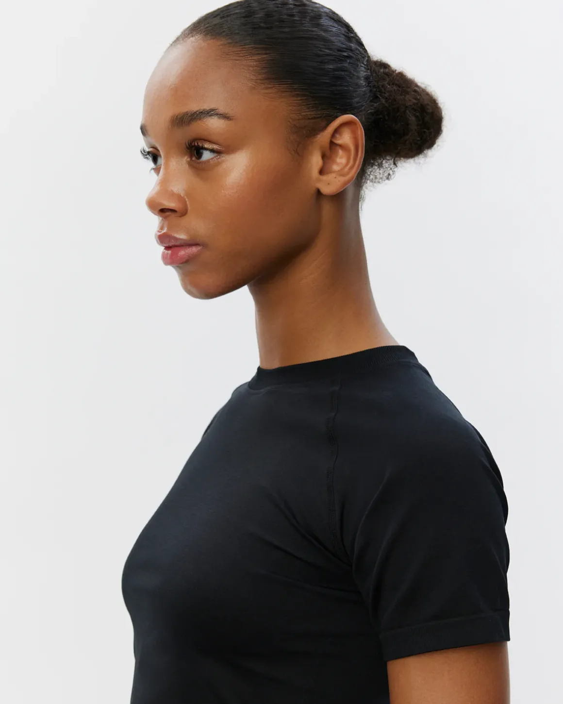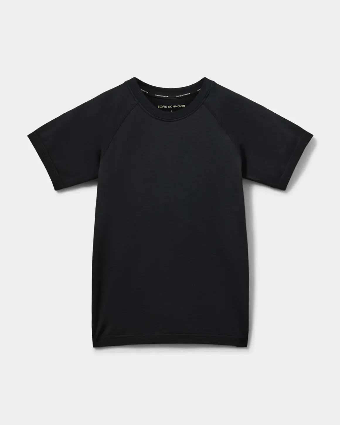 • The T-shirt is designed in a comfortable material and has a sporty fit close to the body.