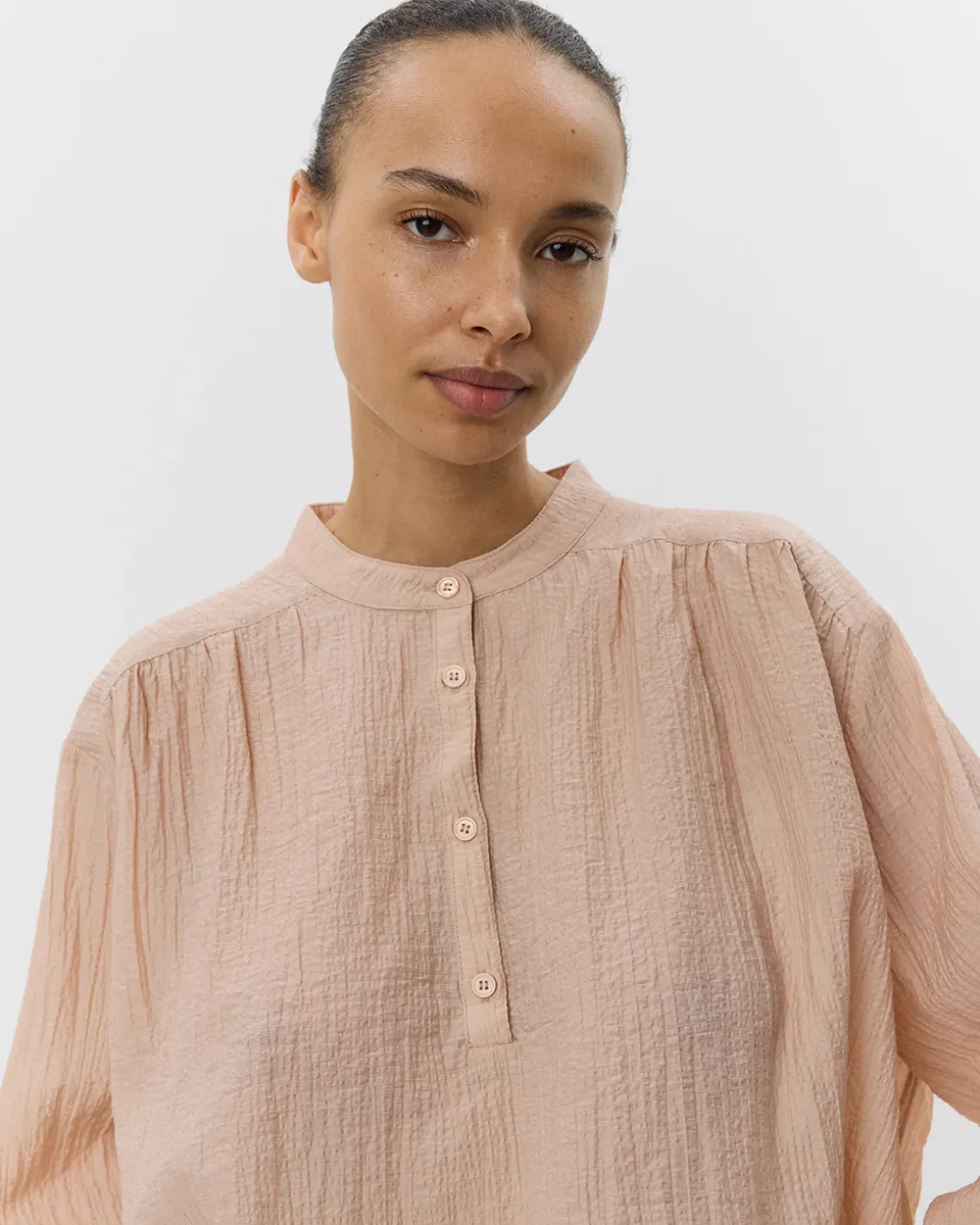 • Button closure at the front and long sleeves with cuffs