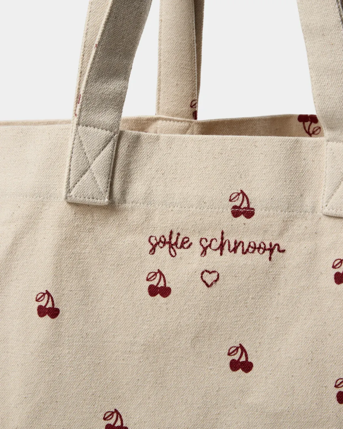 Tote bag in cream-colored cotton with small cherry print and ’Sofie Schnoor ♥’ logo. The bag has two handles and is made of 100% cotton.