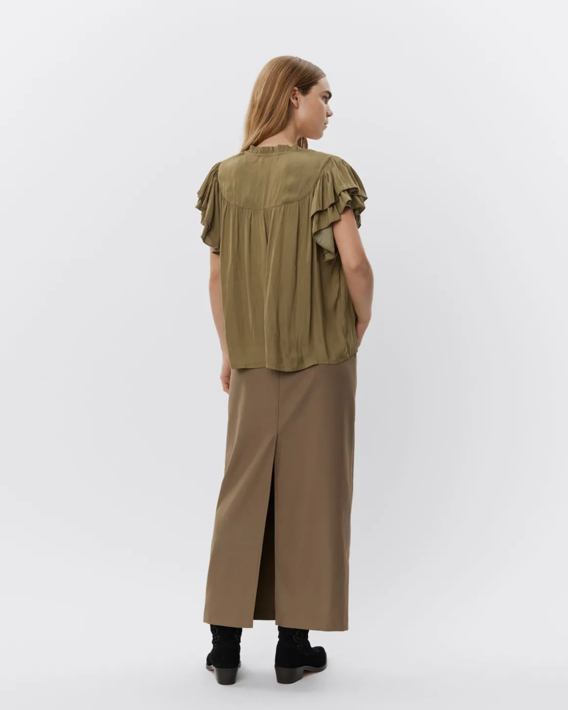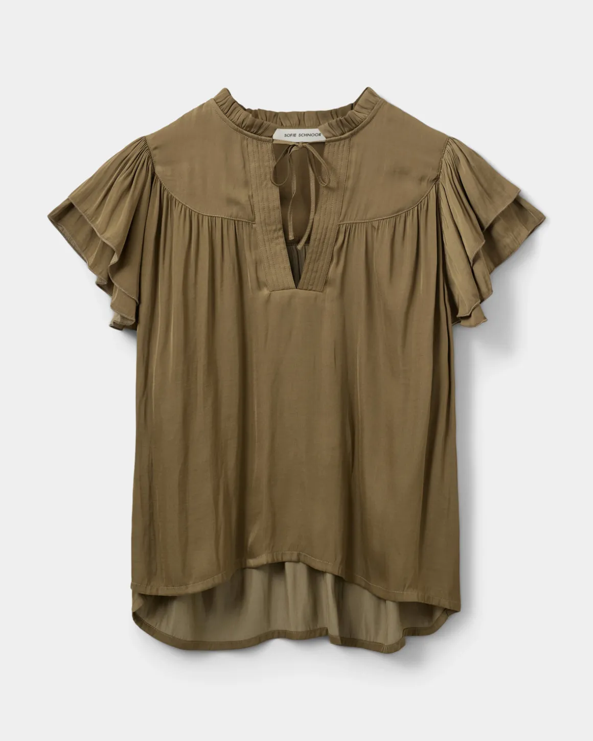 It is designed with fine frills on the sleeves and neck and a beautiful tie closure.