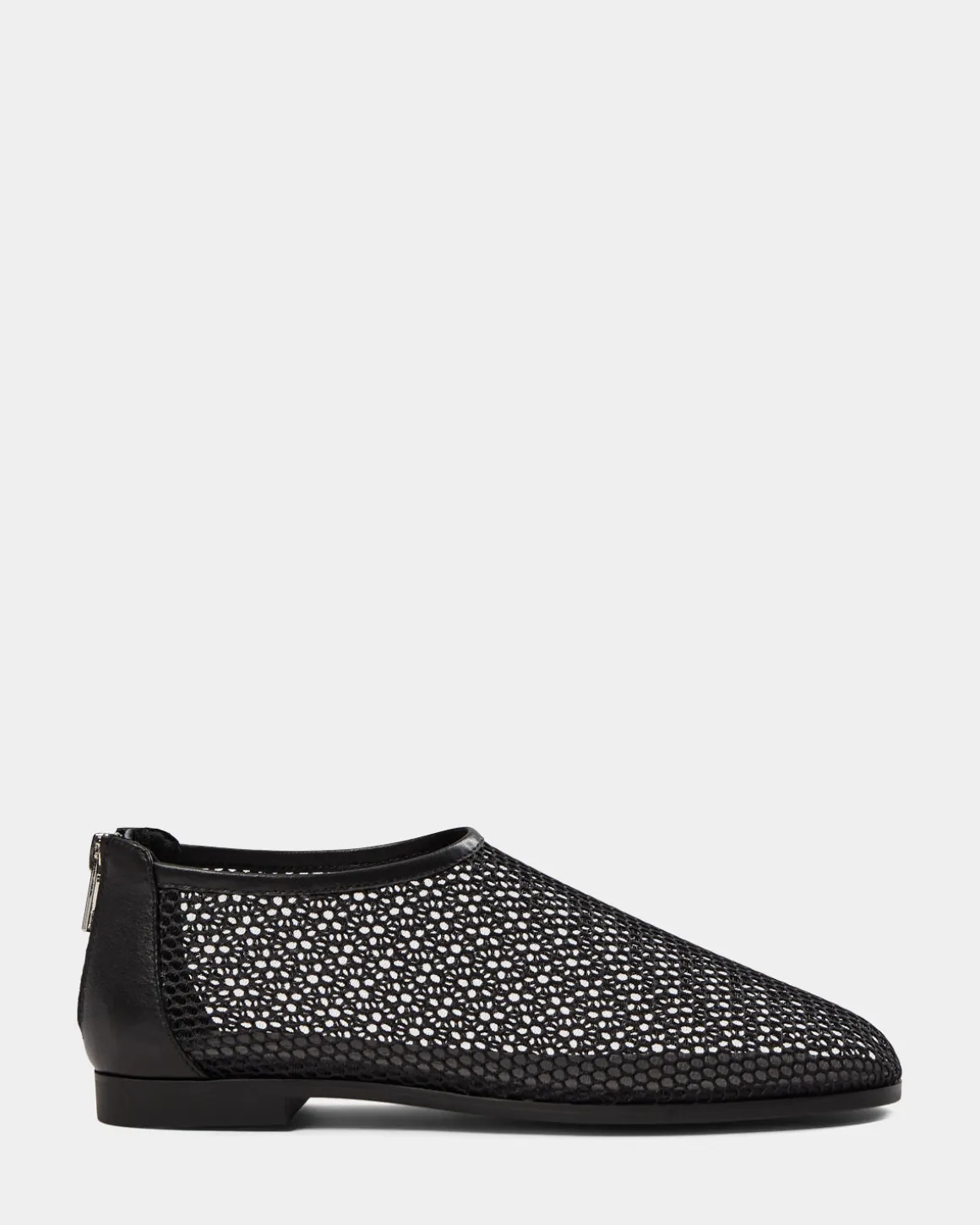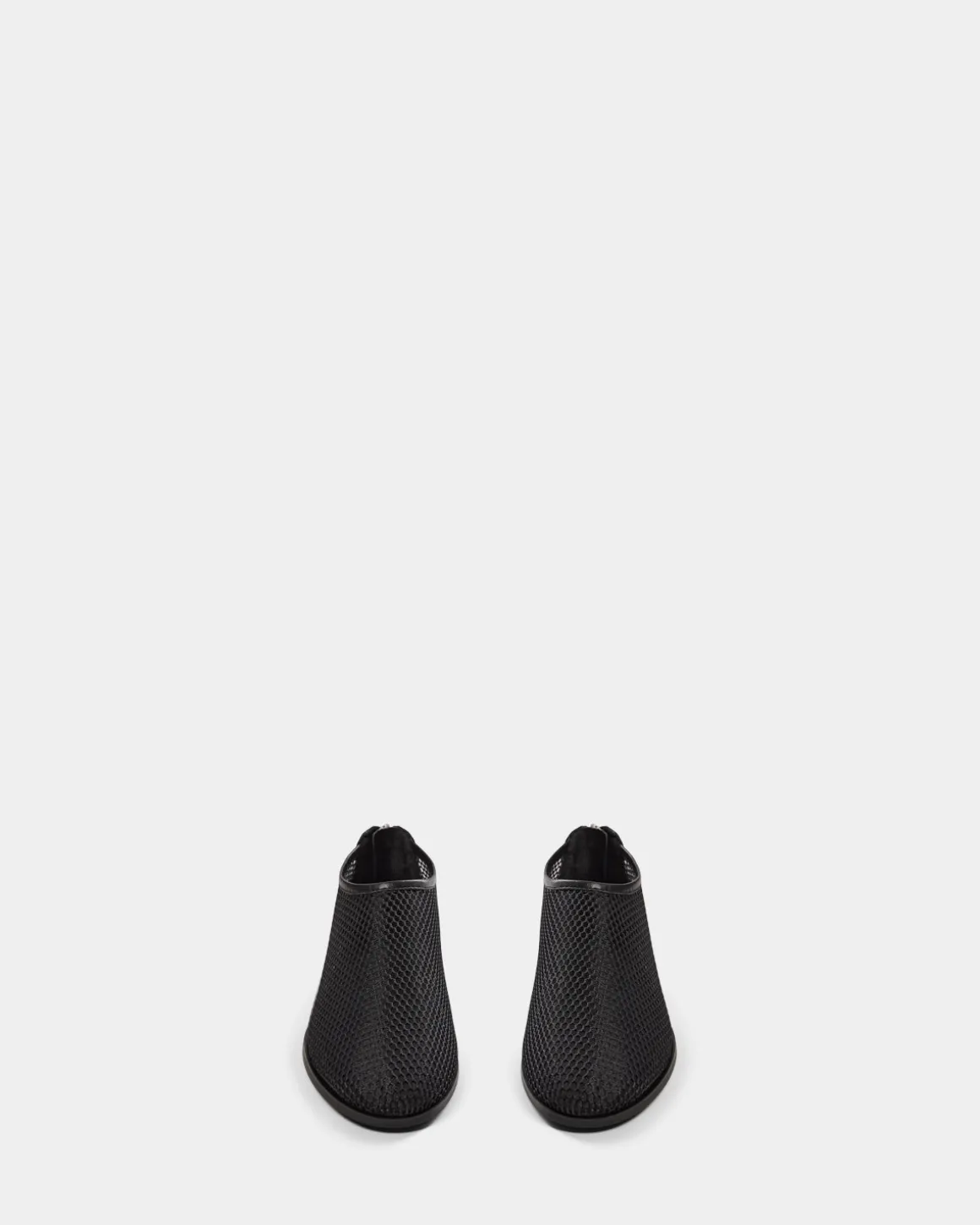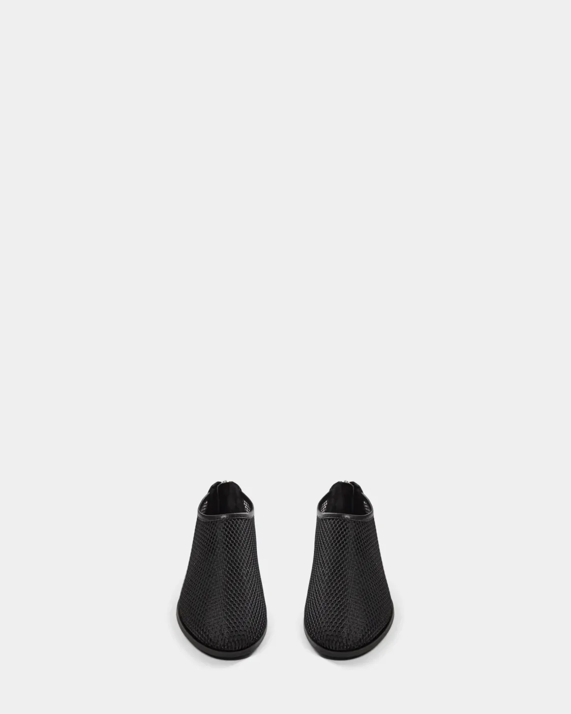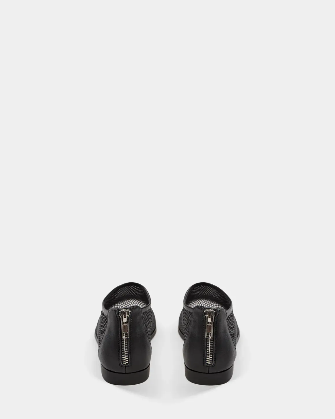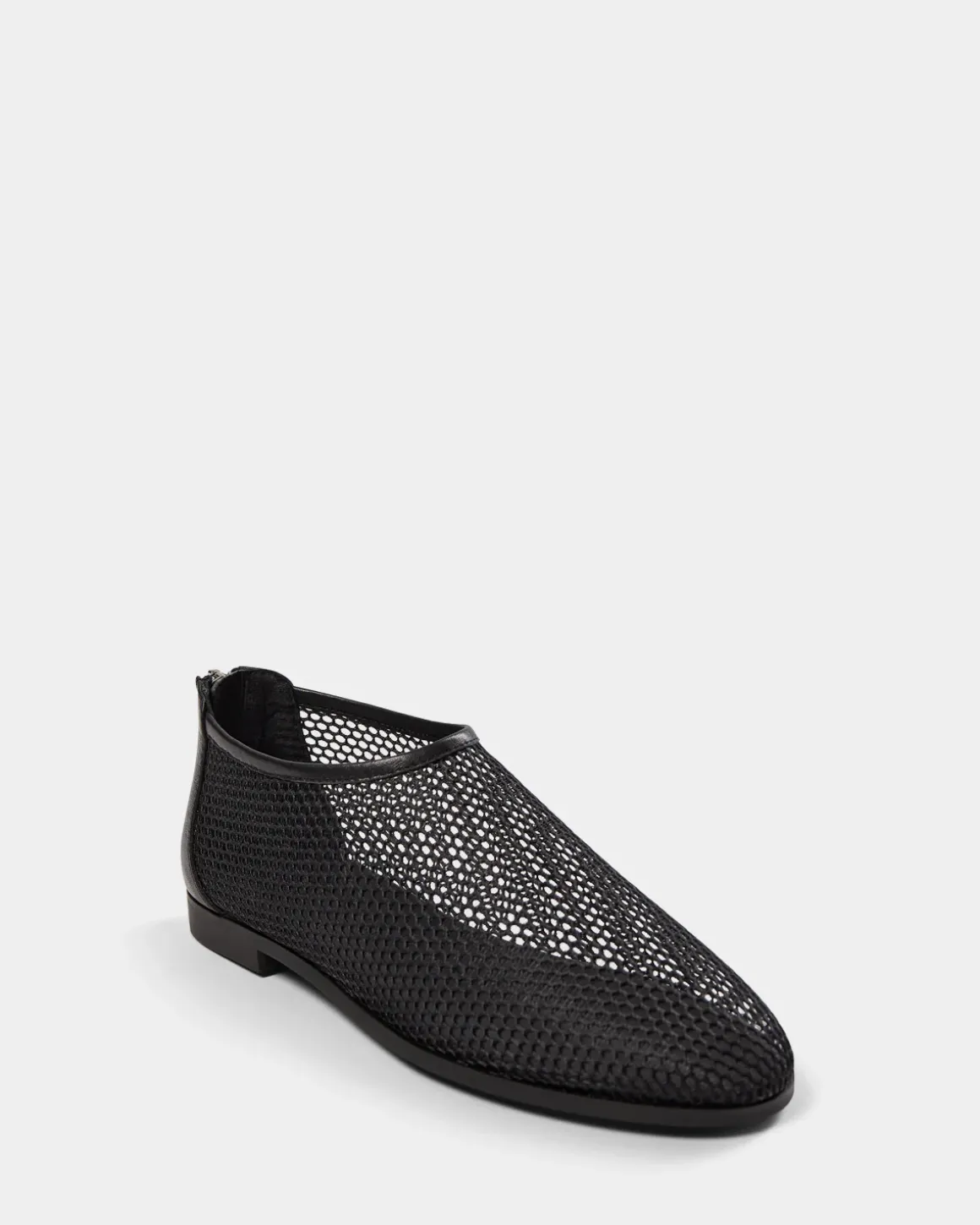 • Ankle-high ballerina in mesh with rounded toe and zip at the back
