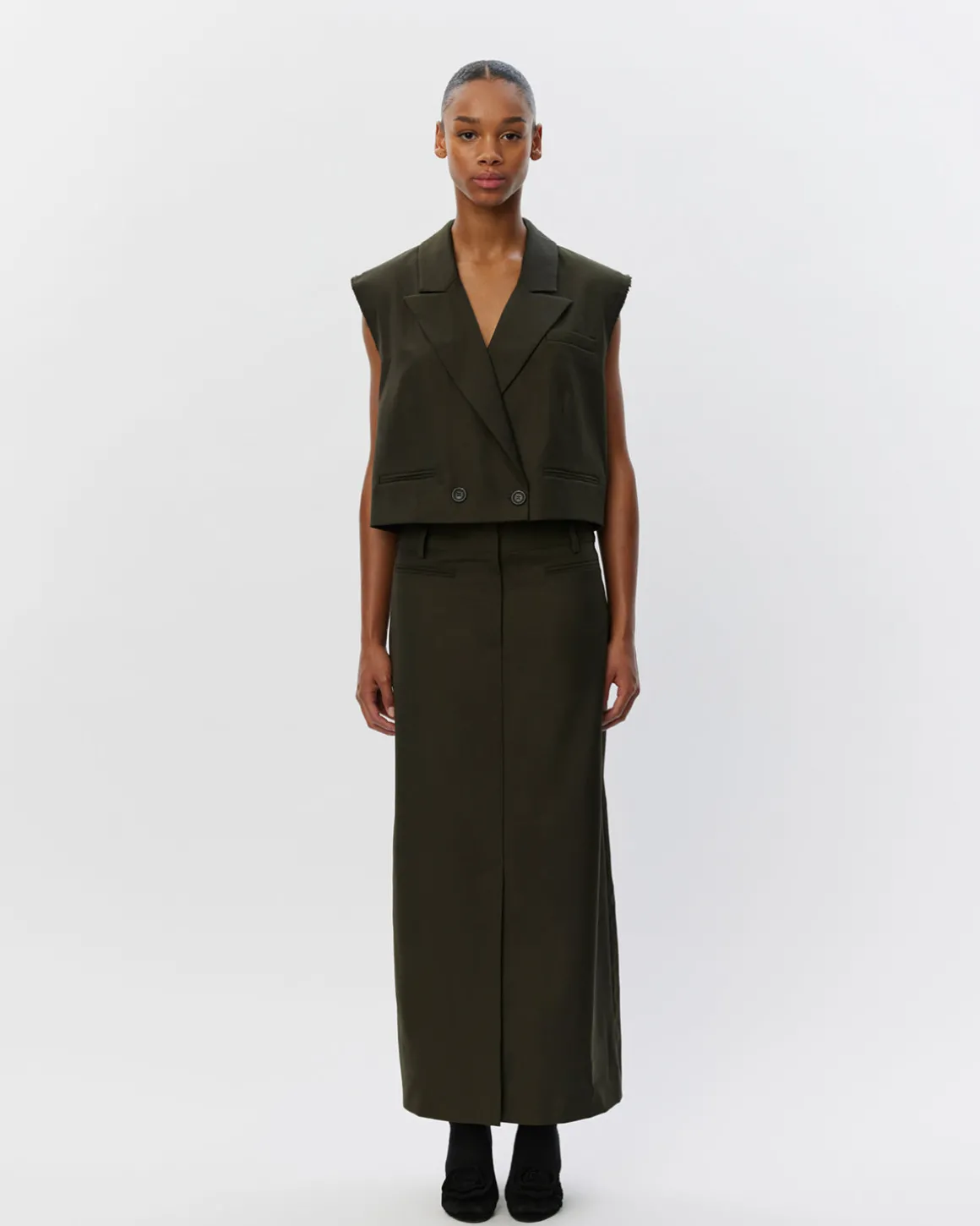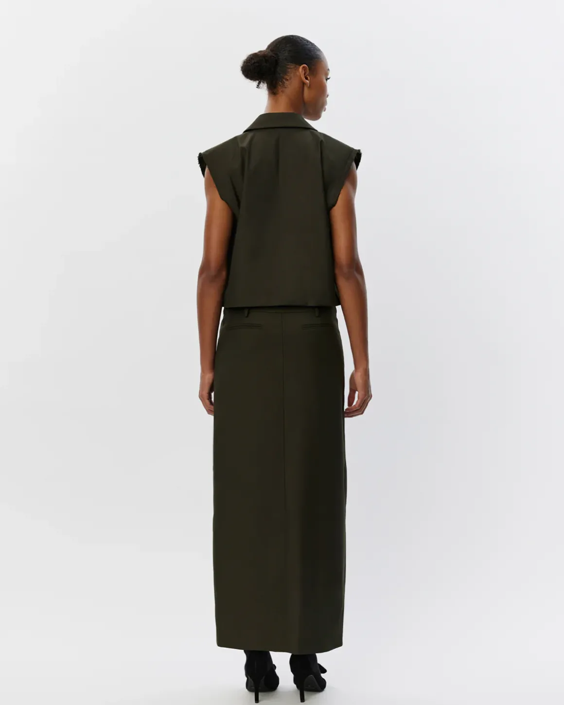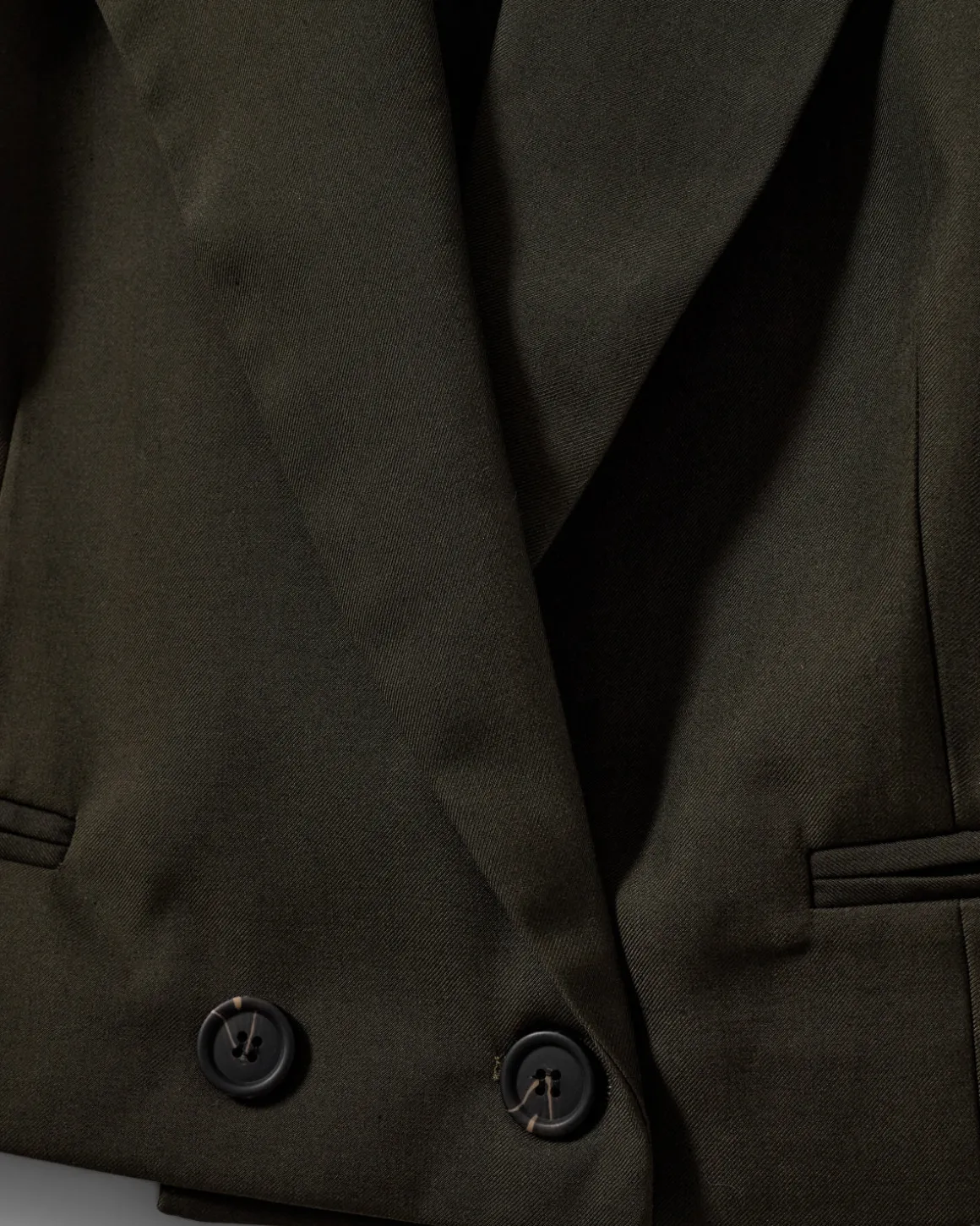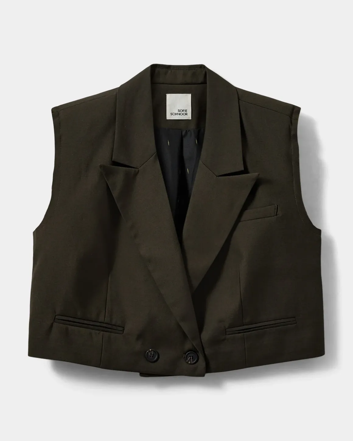 • The vest has a classic two-button front closure, which adds a sophisticated detail and ensures a well-executed finish.