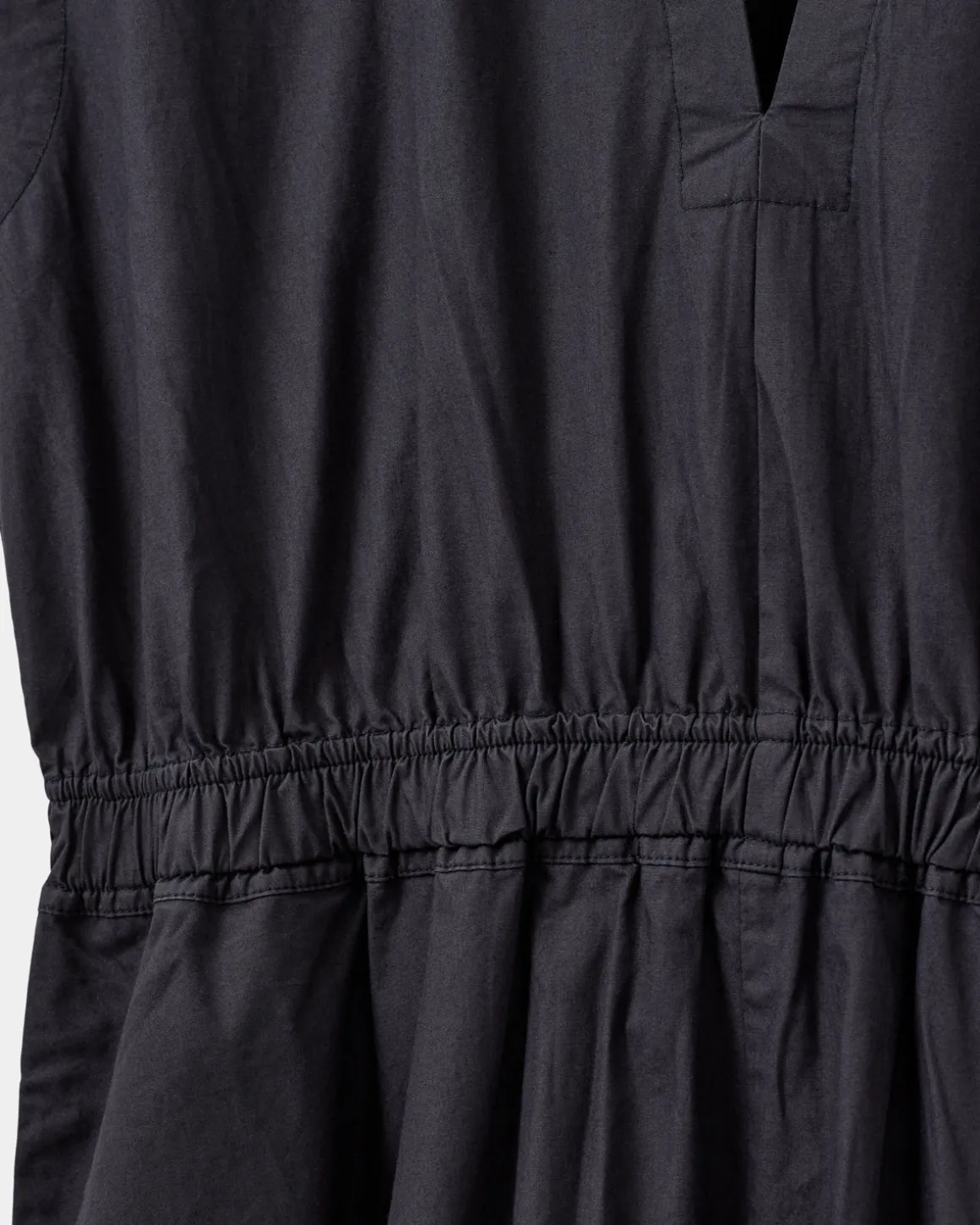 Designed with a V-neckline, elastic edge at the waist and fine collar with details.