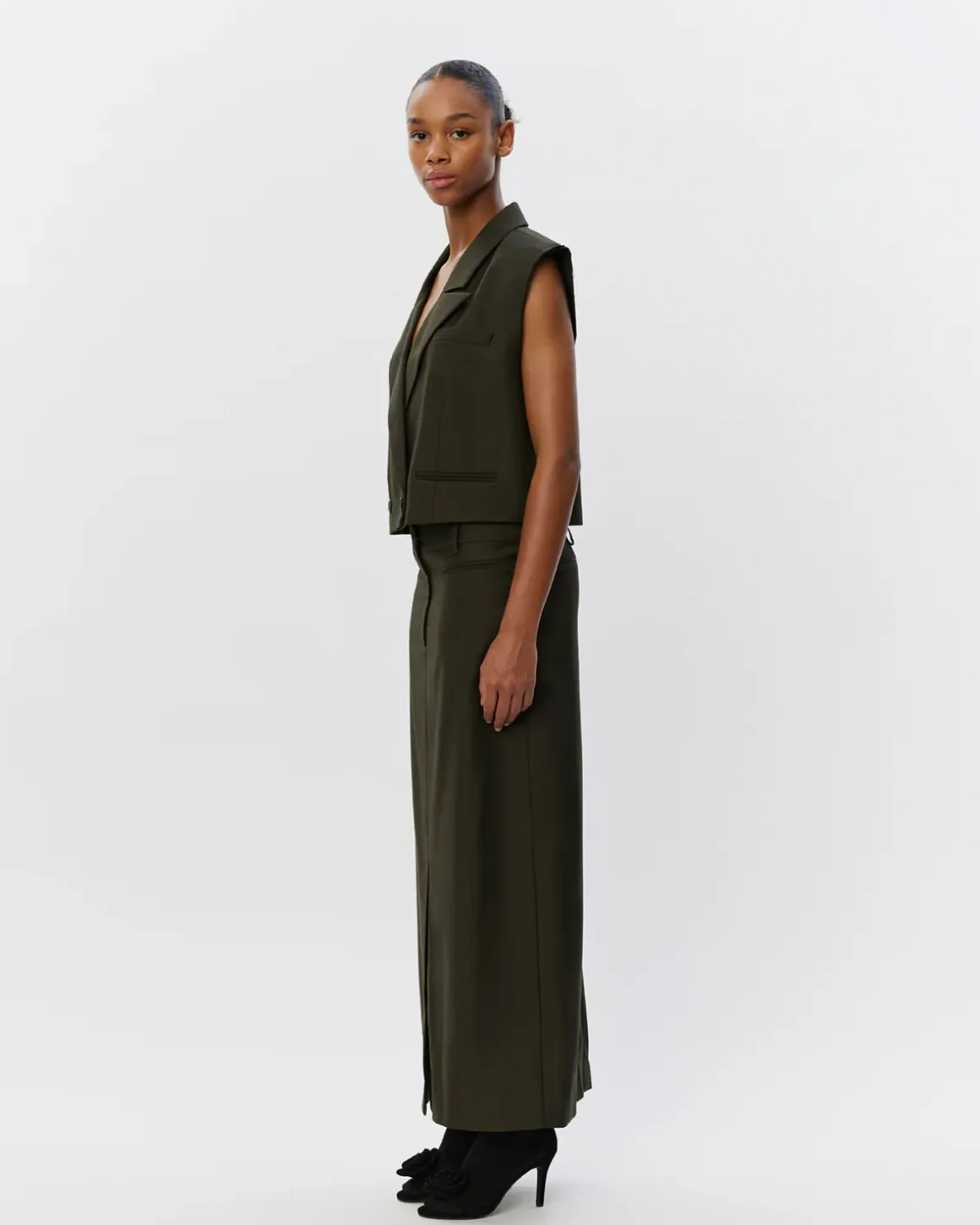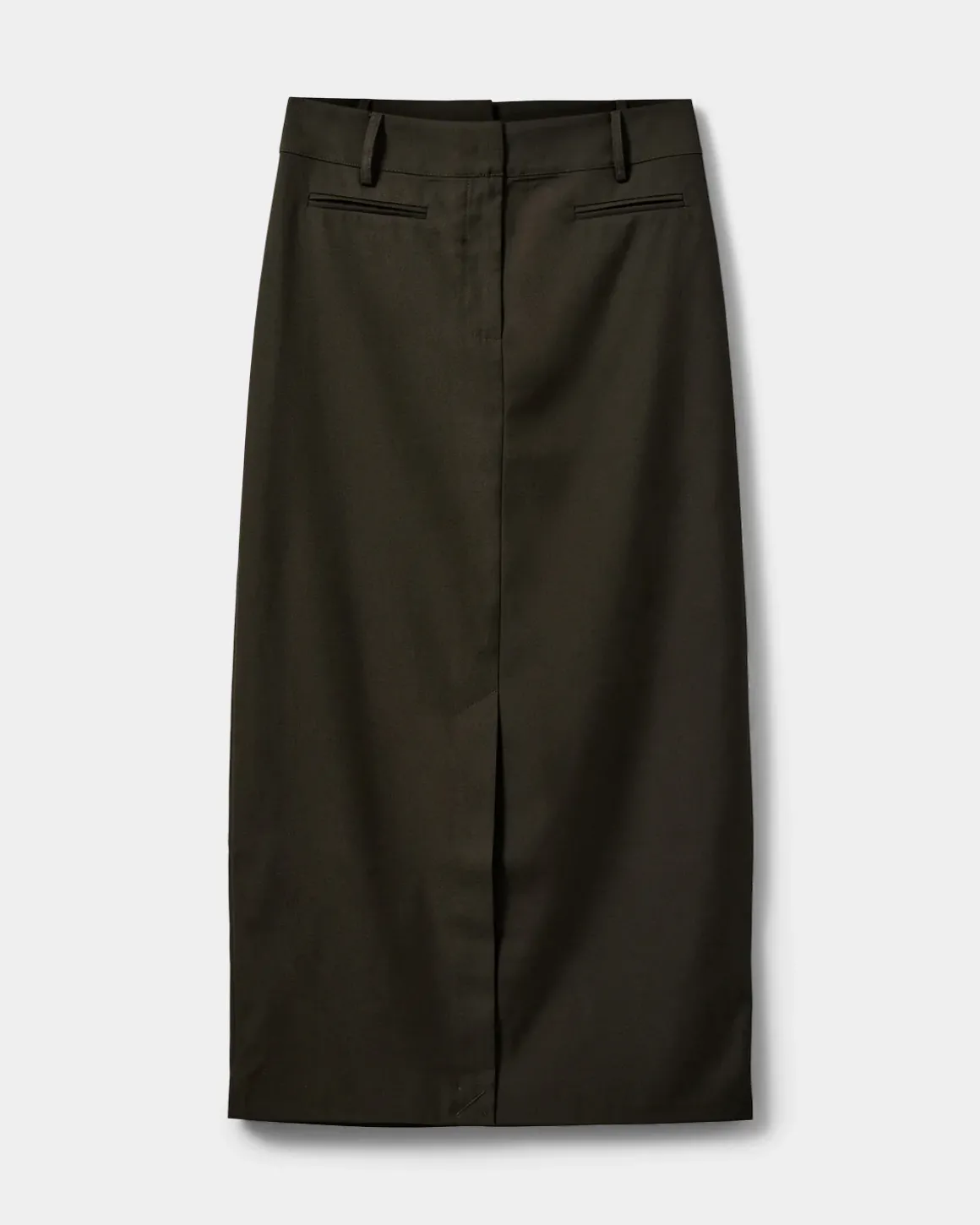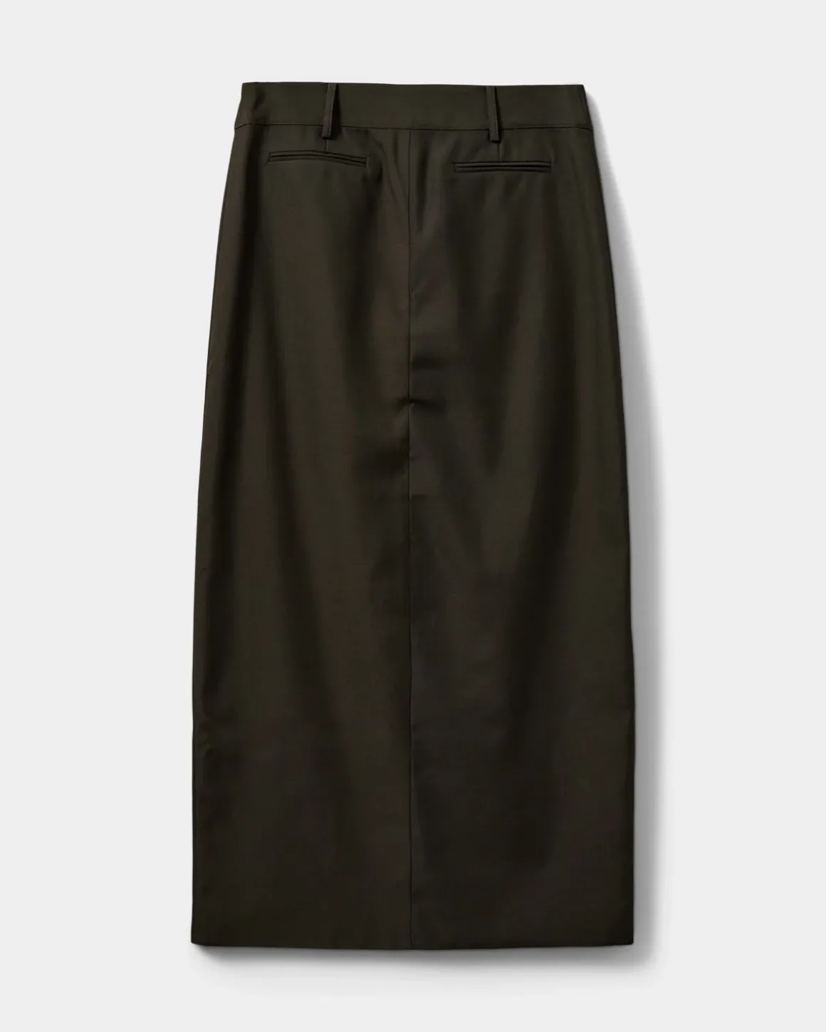 • Olive green maxi dress skirt with a straight cut.