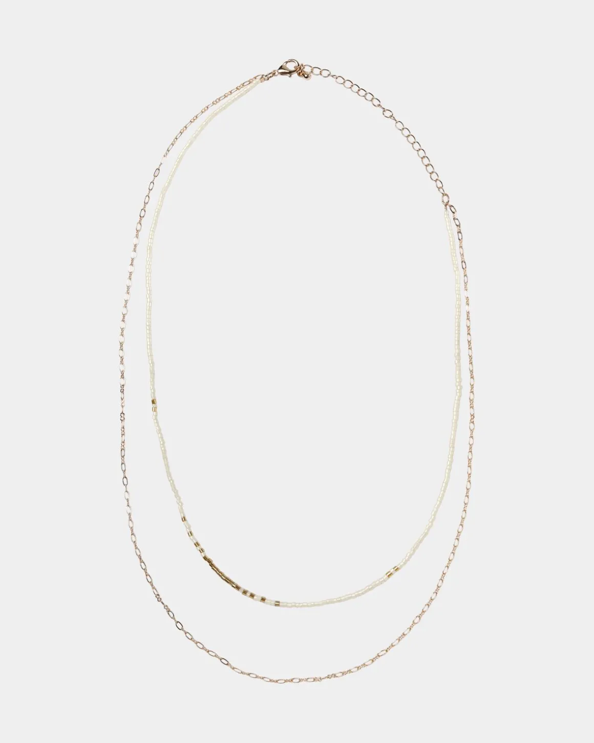 • Necklace with two chains with pearls.