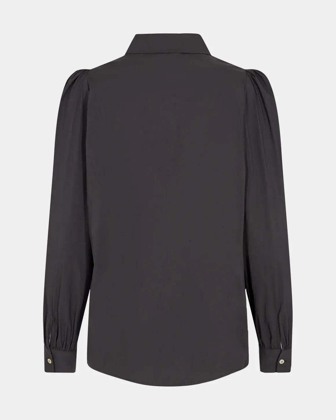 • The shirt has a button closure, a beautiful collar, small puff sleeves and wide cuffs that add a sophisticated touch to your look.