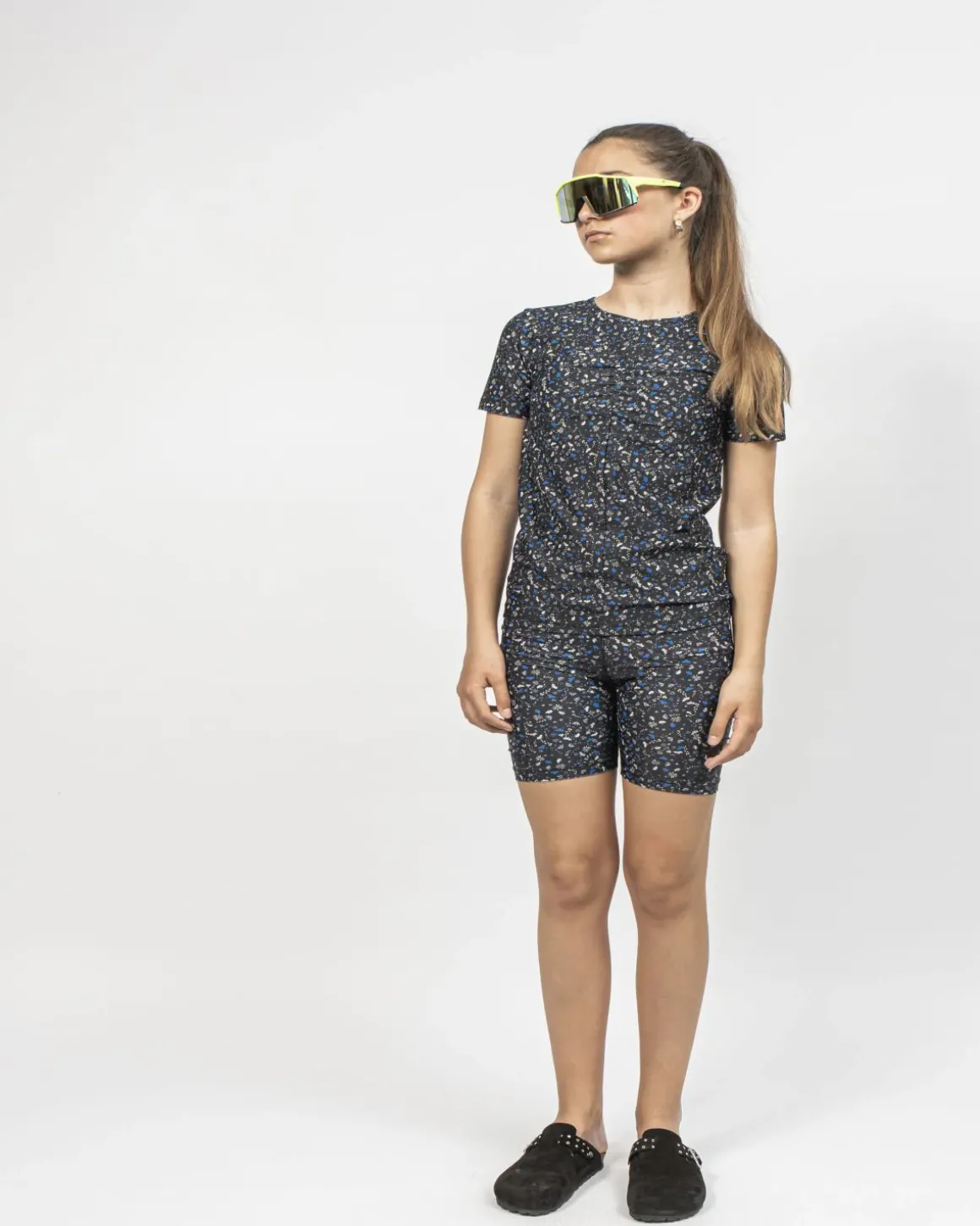 A workout T-shirt with a flower mix and a delicate wrinkle effect in the middle of the front.