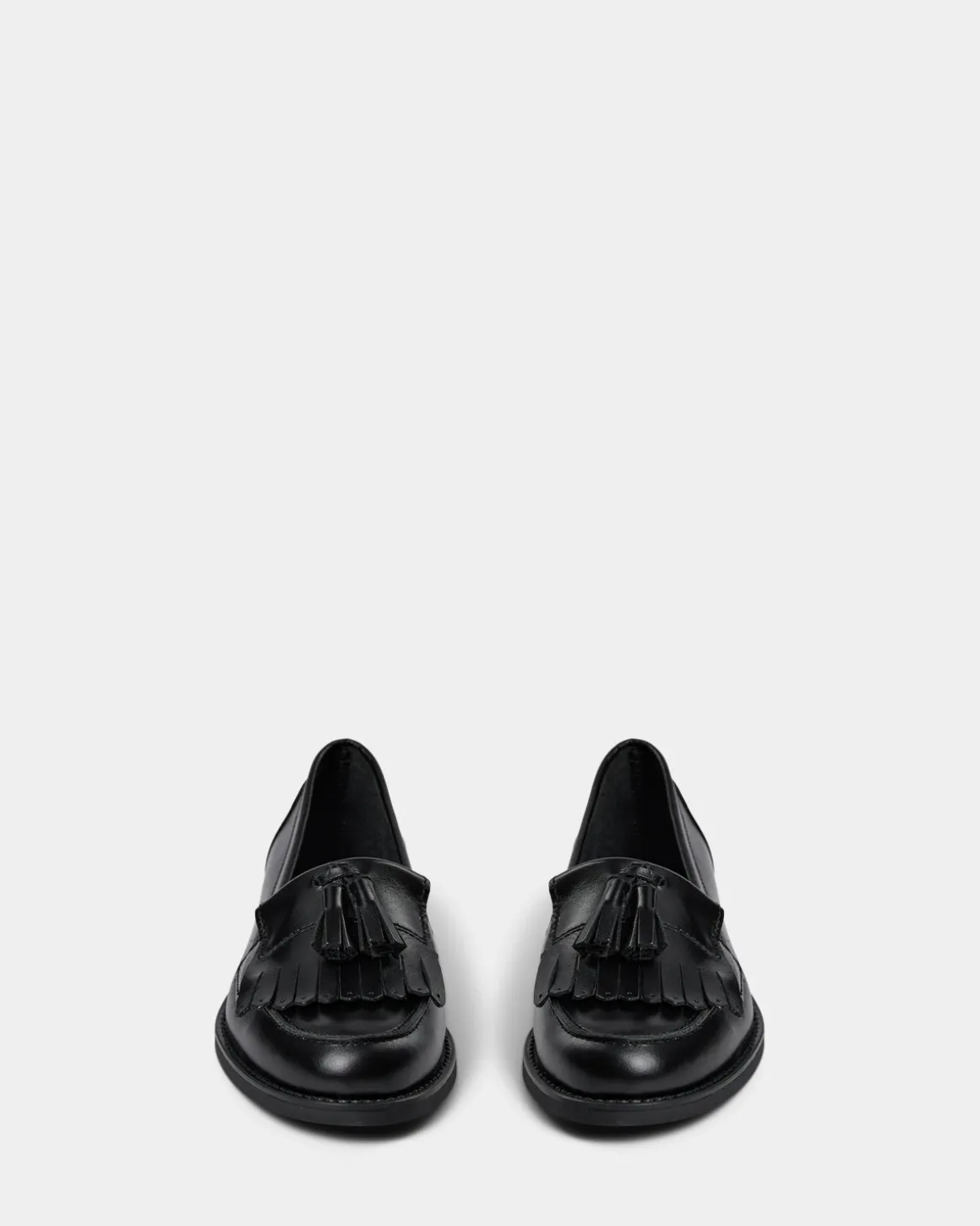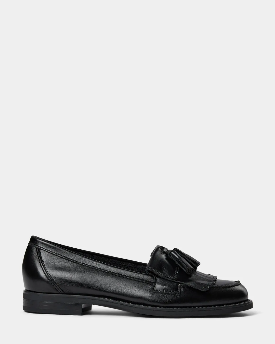 These shoes feature a classic design with fringe details and a low heel, giving them a timeless and elegant appearance.