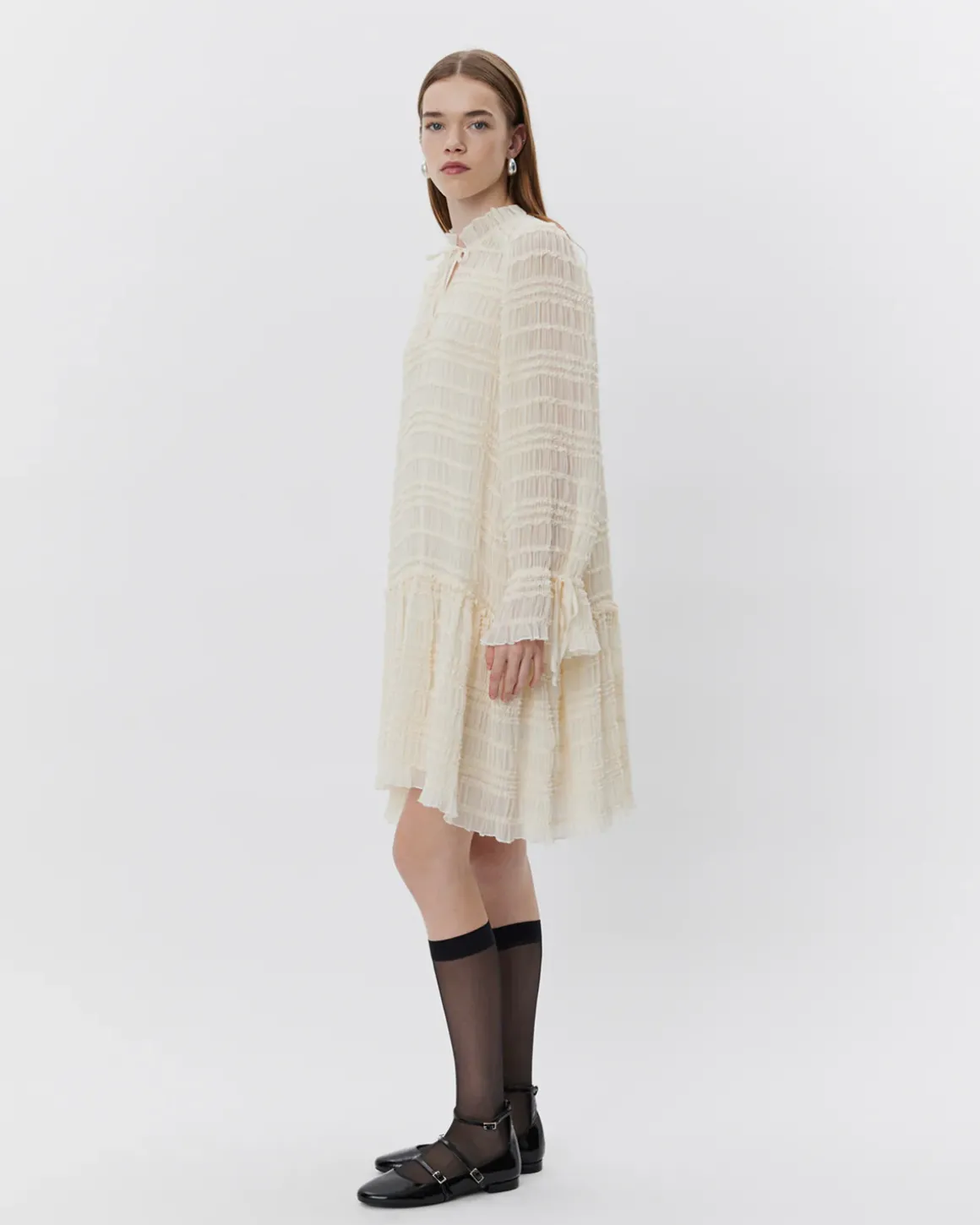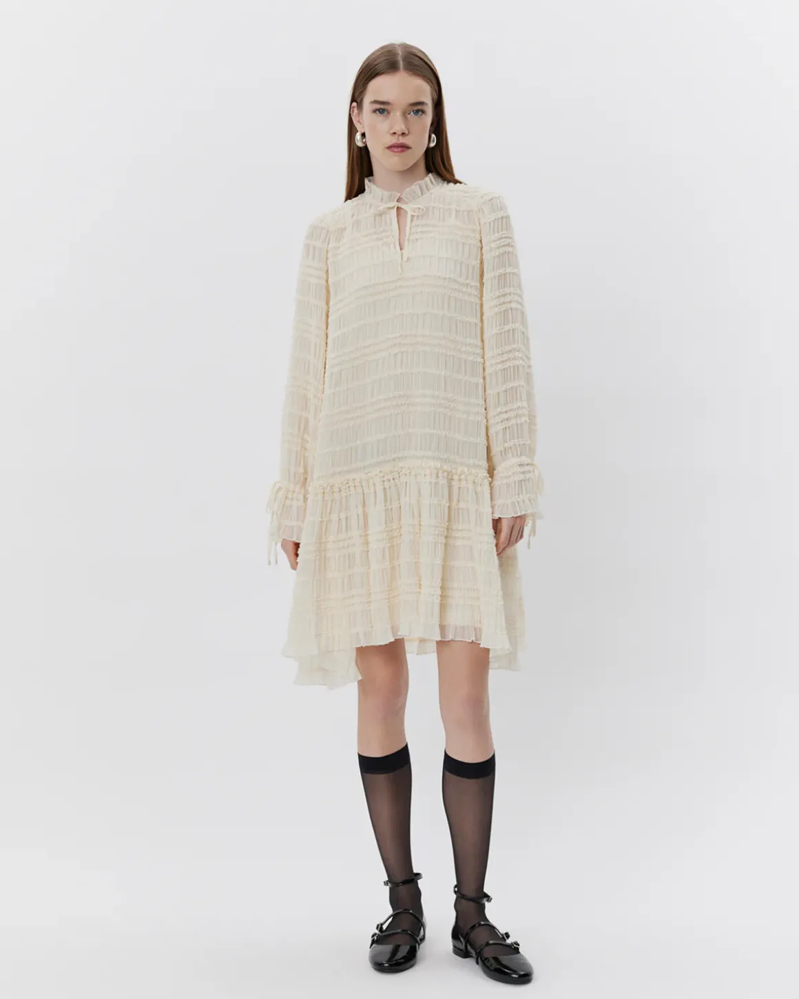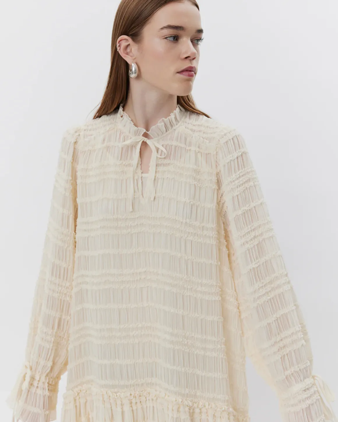 • Sleeves with ruffle details
