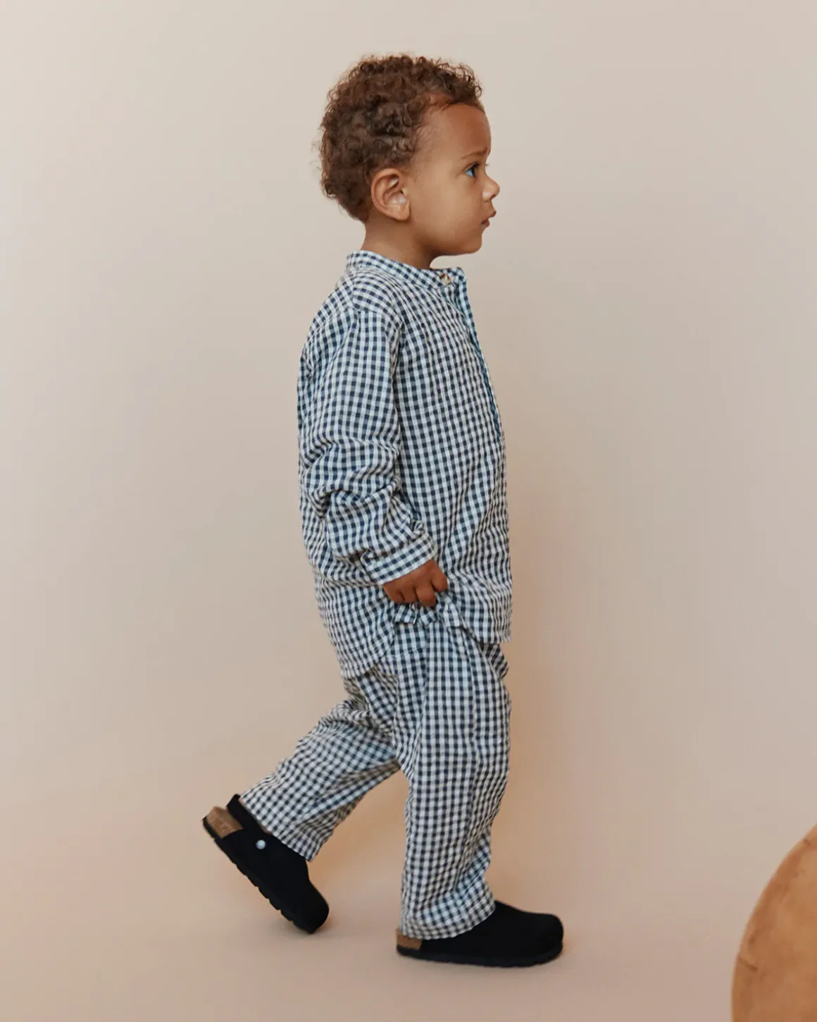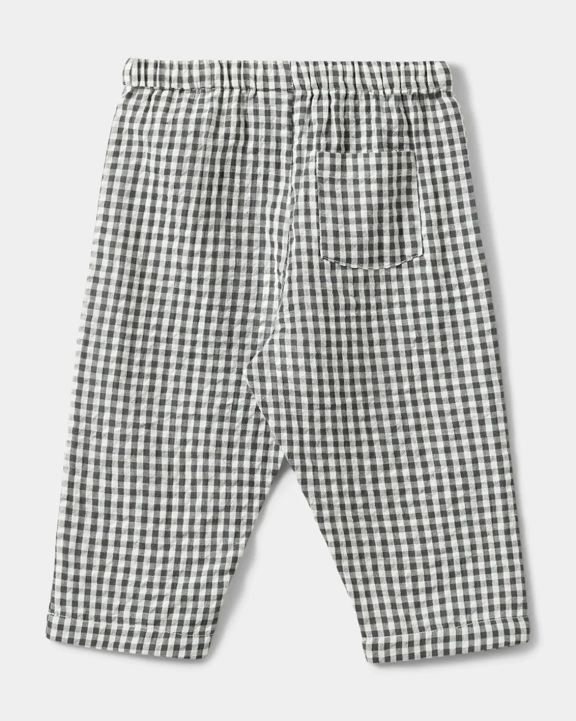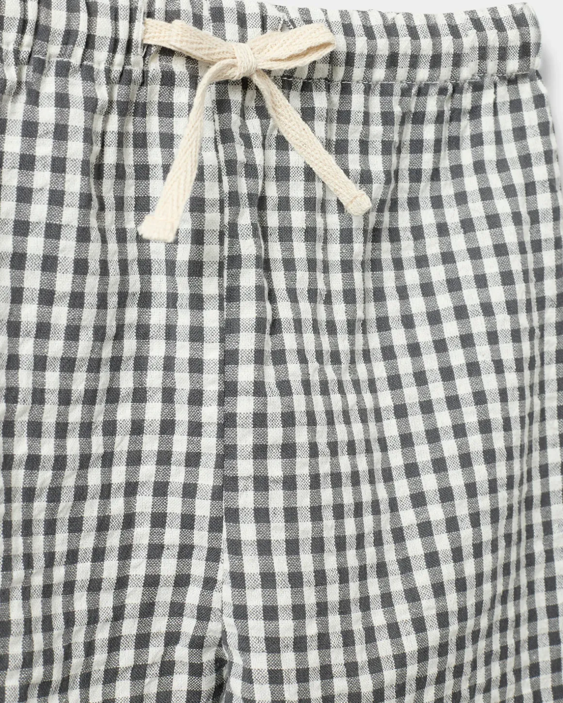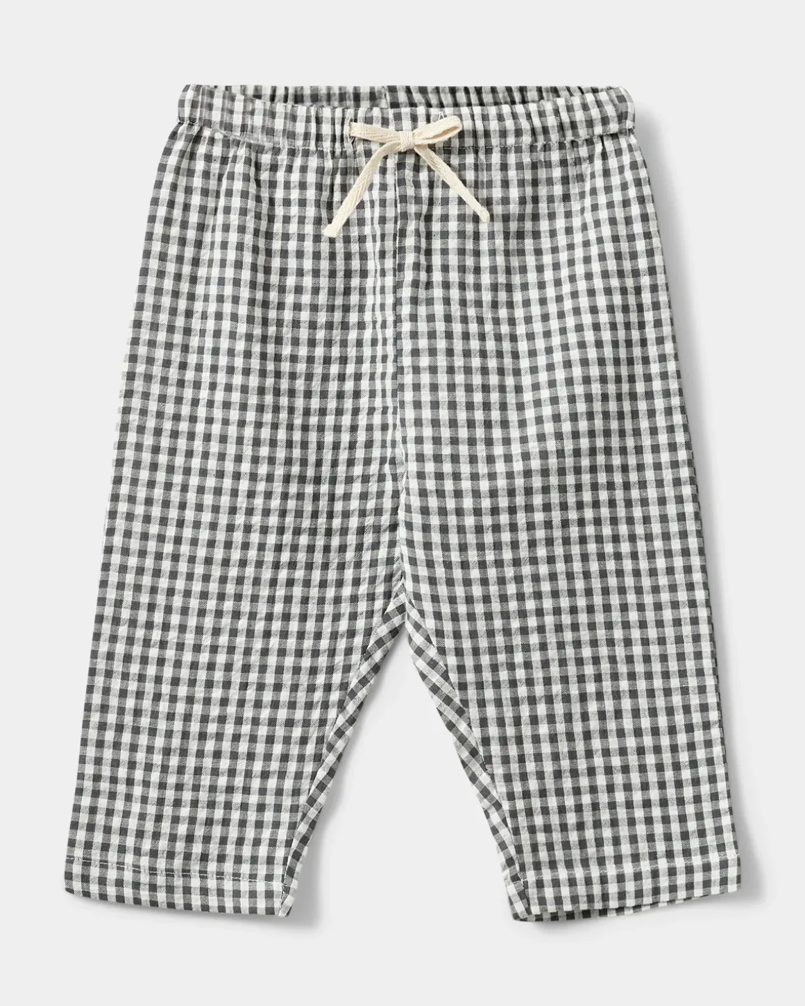 Loose trousers with black and white checks. The trousers have a tie at the waist. Made of 100% cotton.