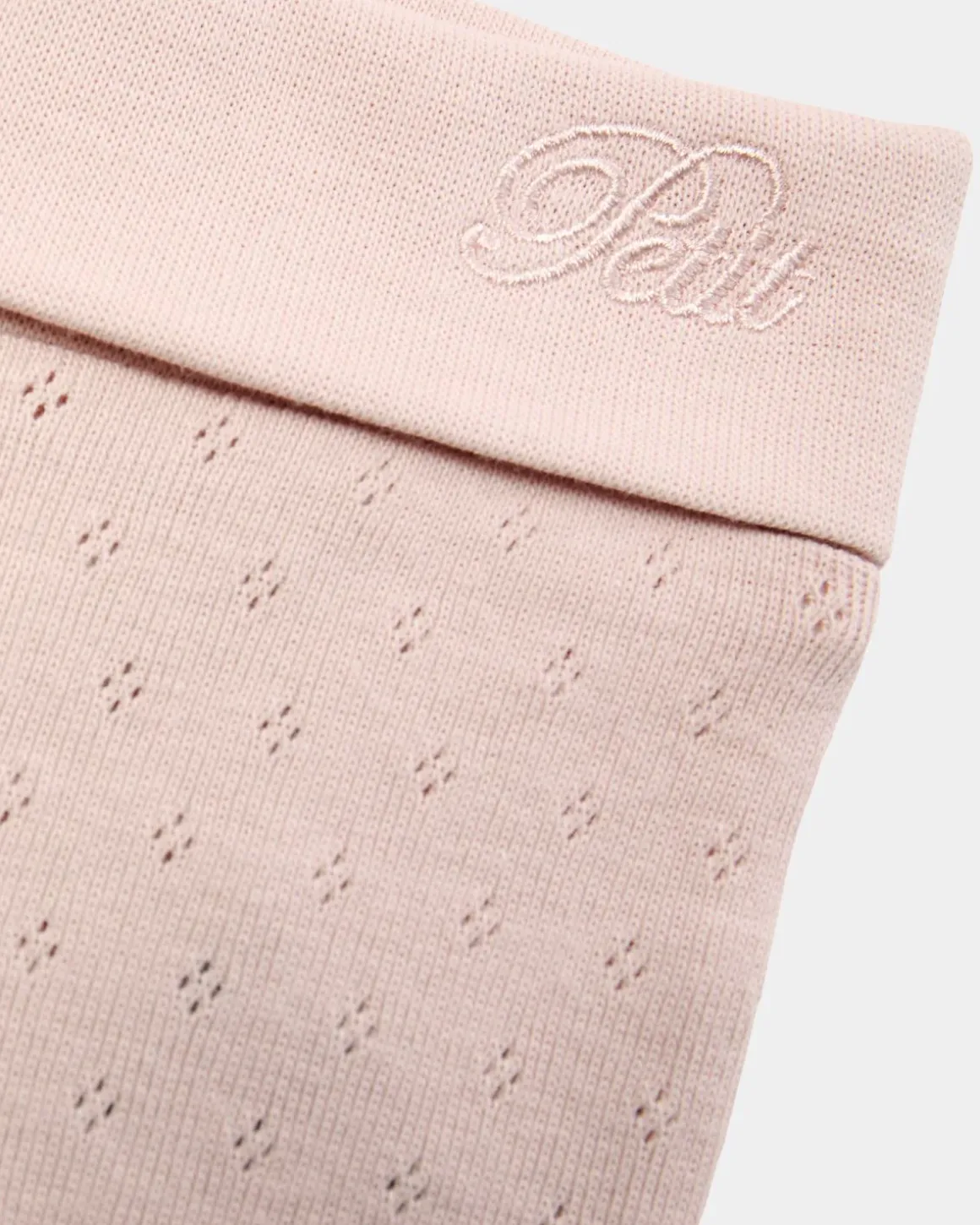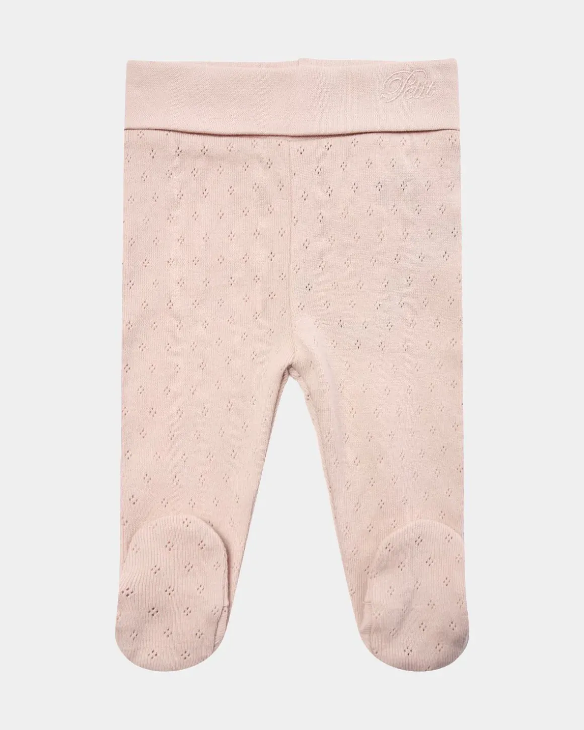 Our sweet pants in light rose with delicate details and the text ”Petit” embroidered at the waist. The pants have a comfortable wide band at the waist and socks for the feet. A simple and beautiful design in a soft material.