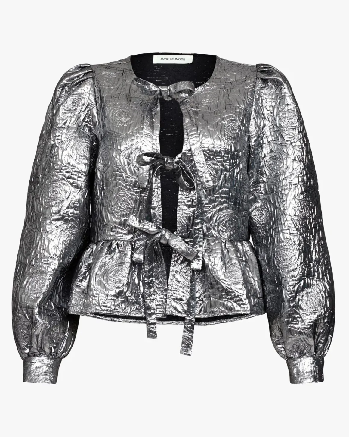 Designed with an adjustable tie string and long sleeves.