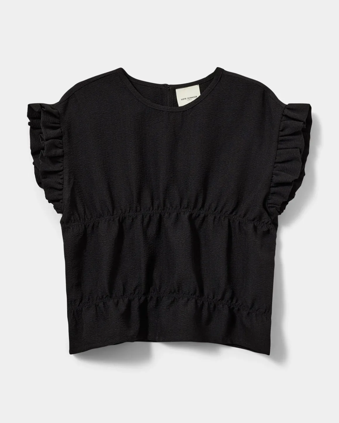 • Top in light structured fabric with short ruffle sleeves