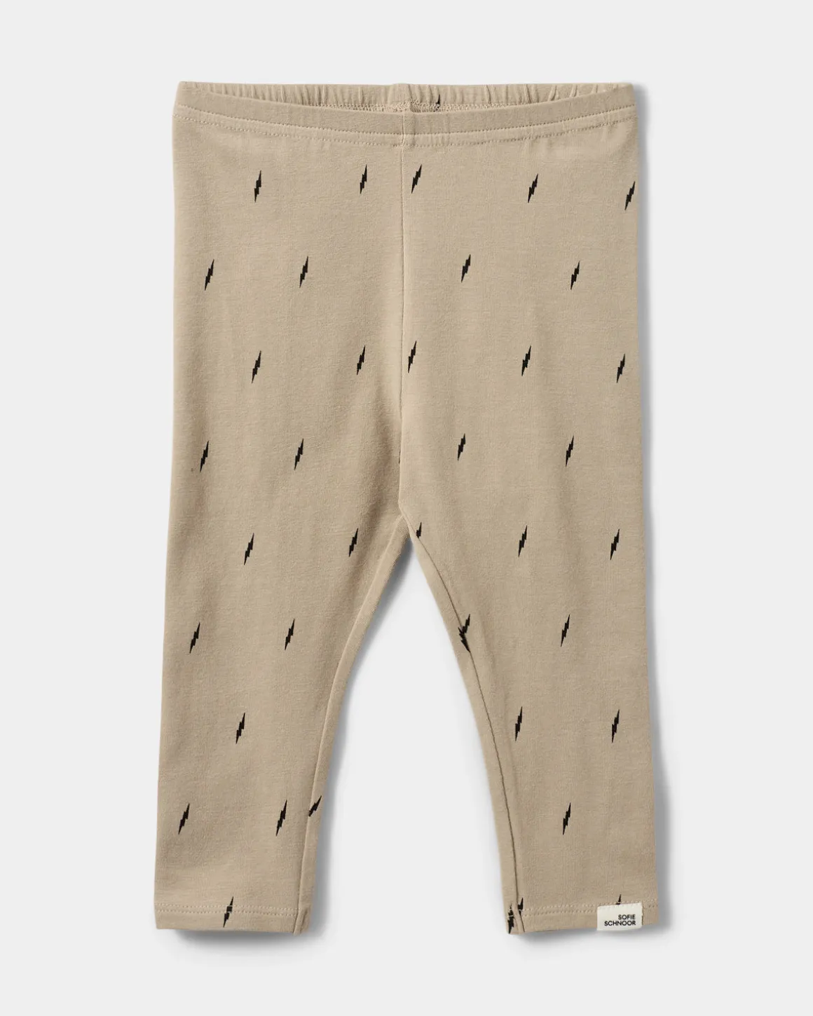 Leggings in beige with small, black lightning print. The pants have an elastic waist. Made in a soft and stretchy blend of 95% organic cotton and 5% elastane.
