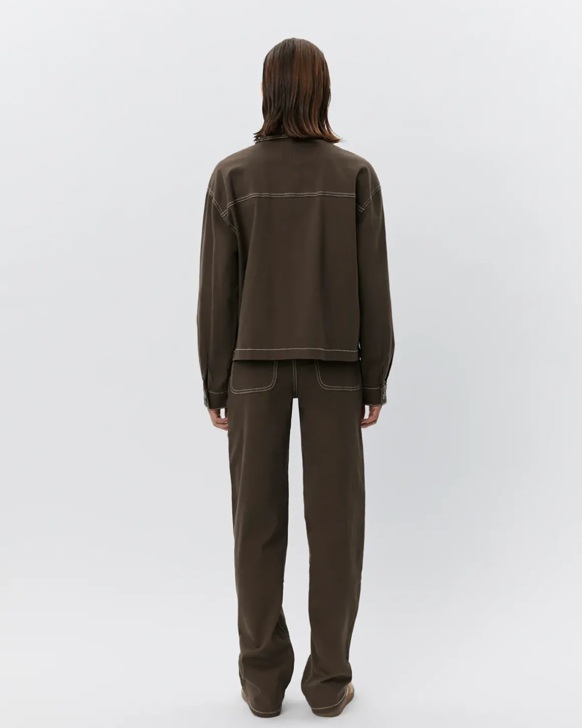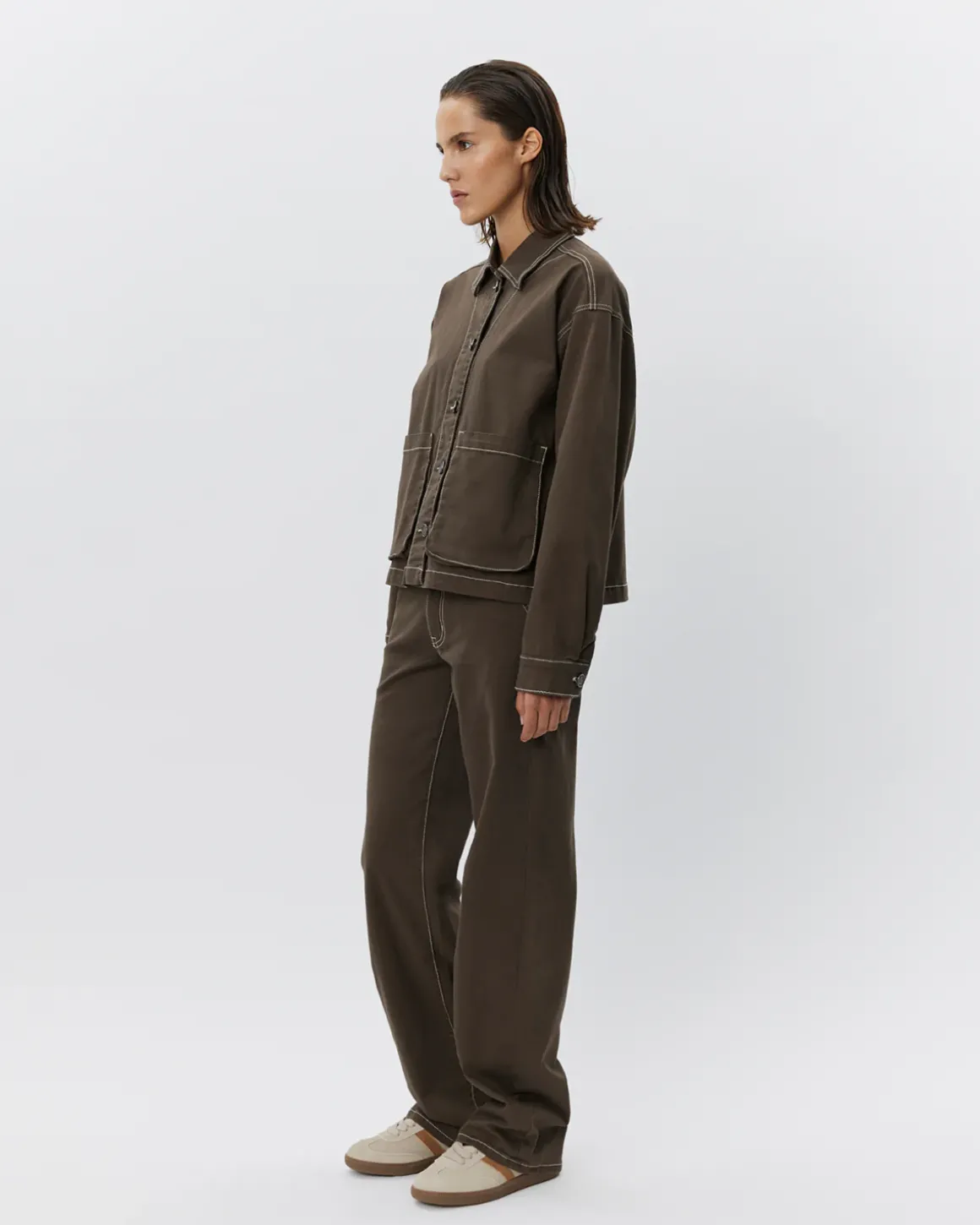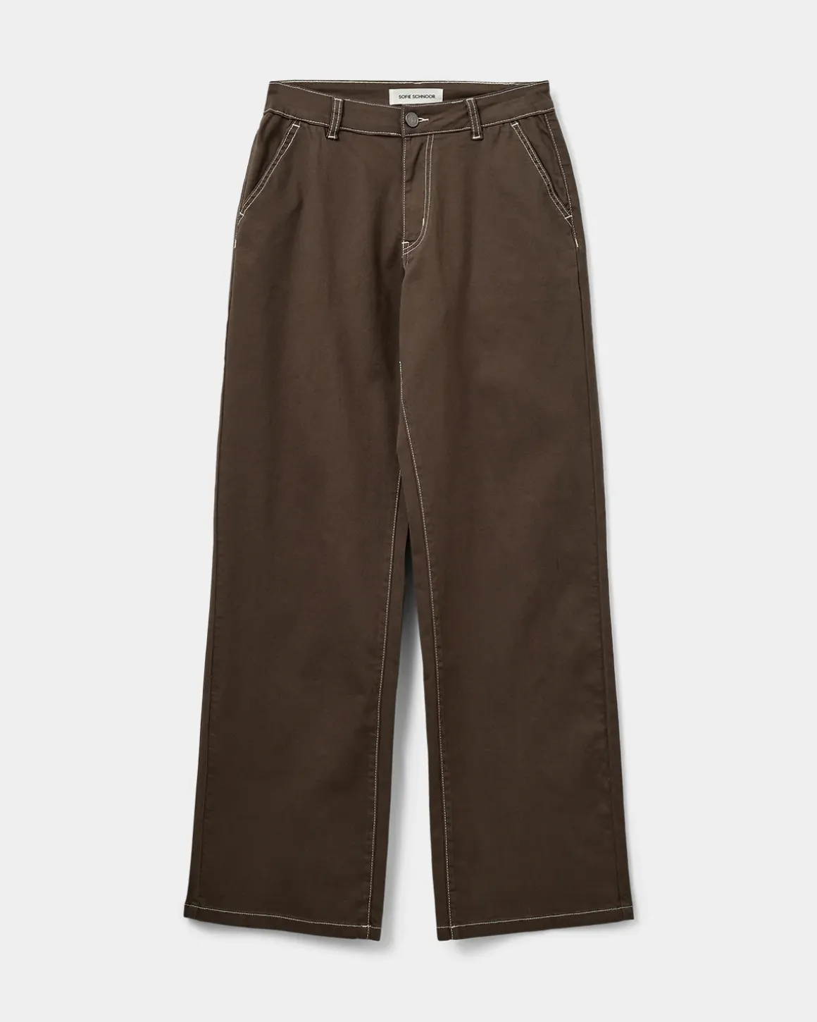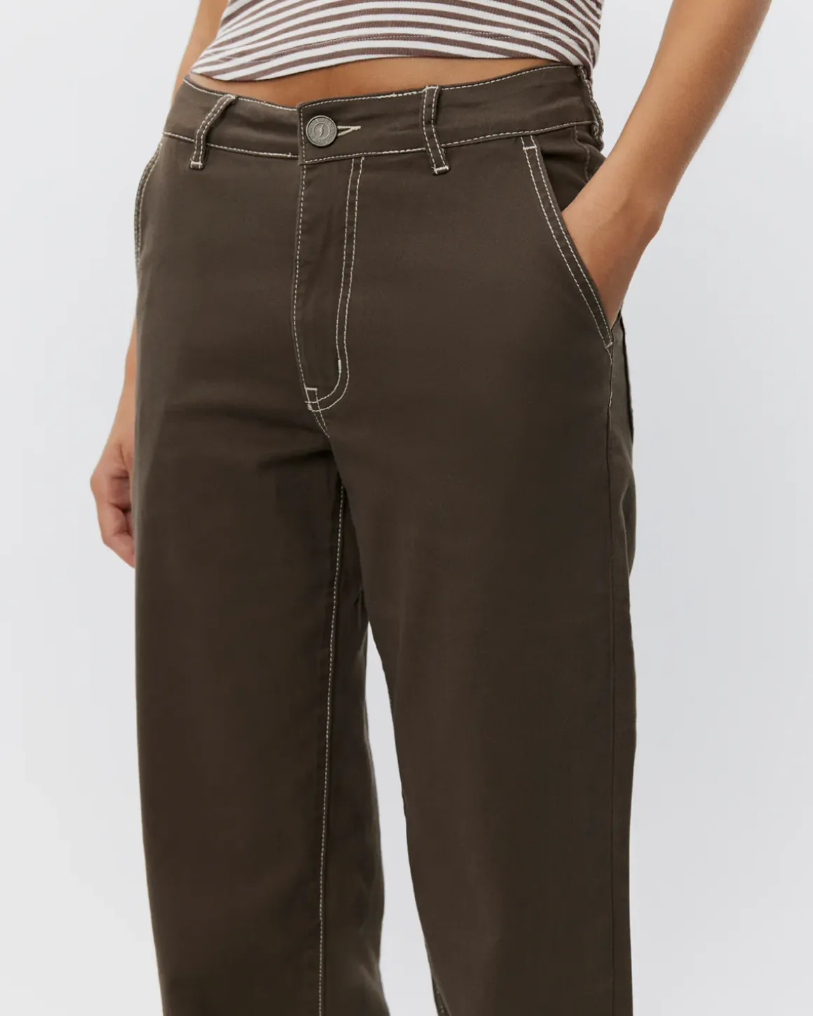 • Designed with white stitching, zip and button closure and a pocket on each side of each pant leg.