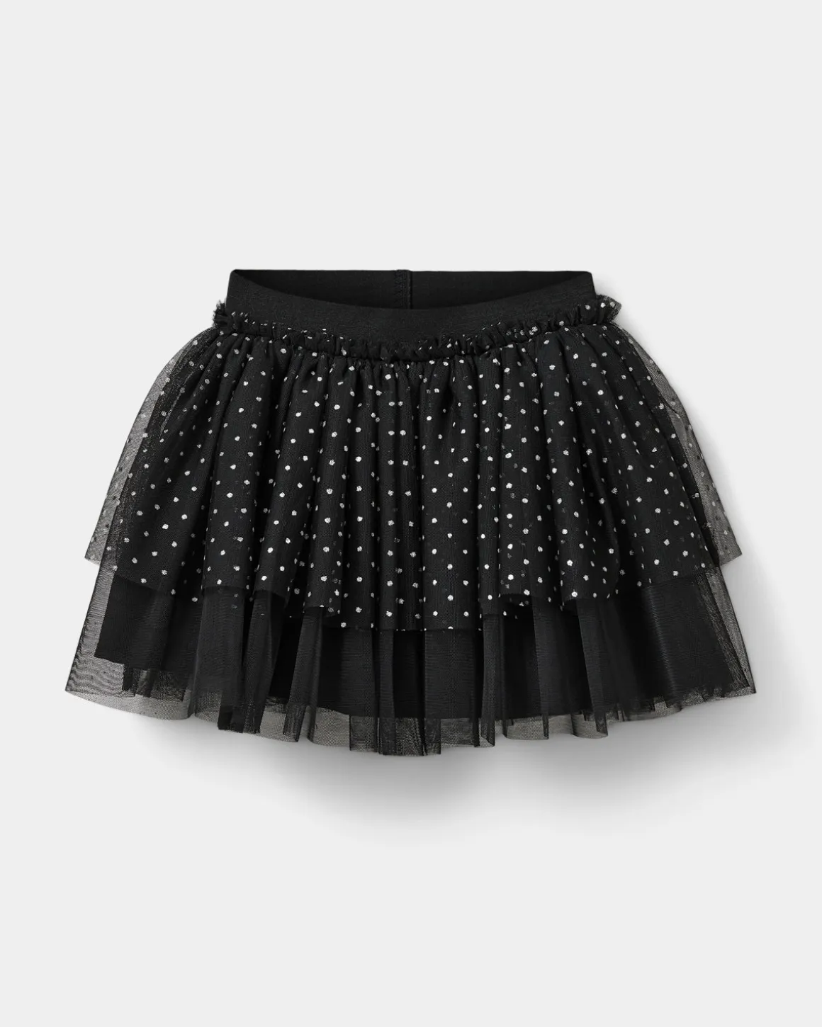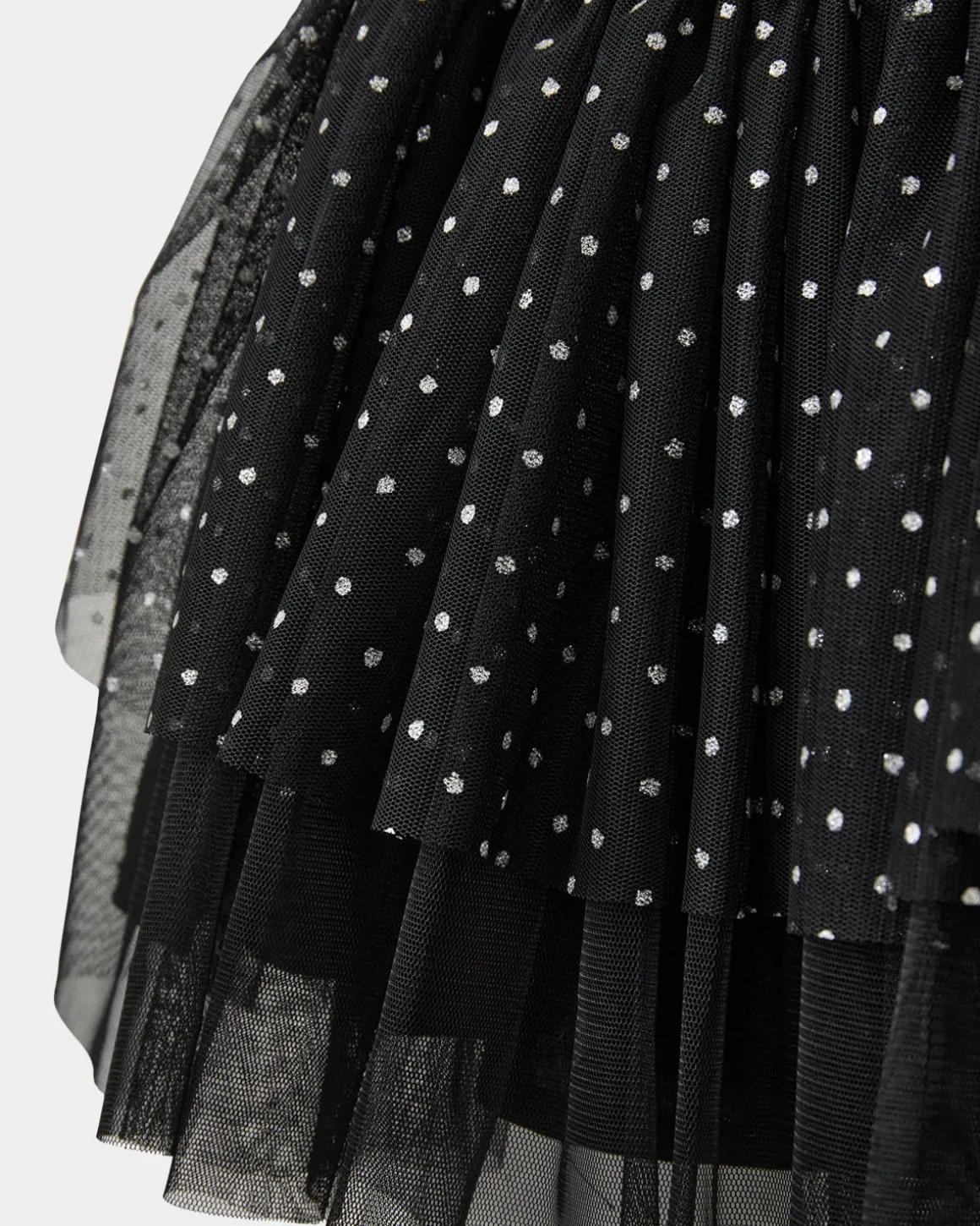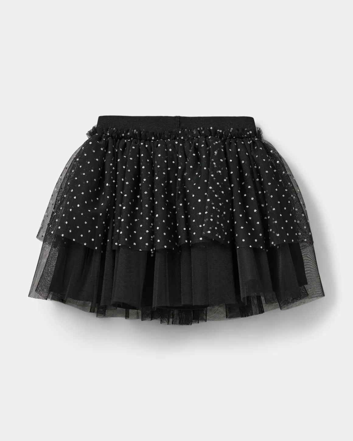 • The skirt features an airy tulle skirt embellished with a star pattern that adds a magical and festive touch.