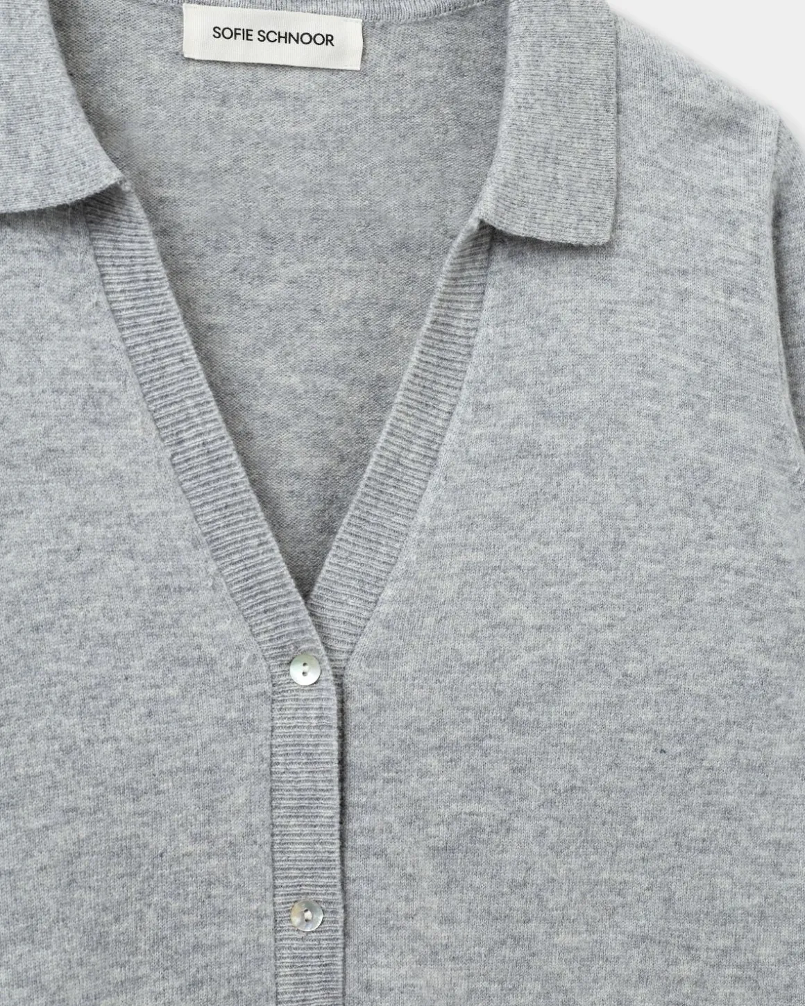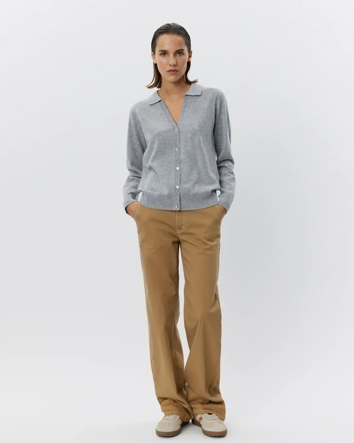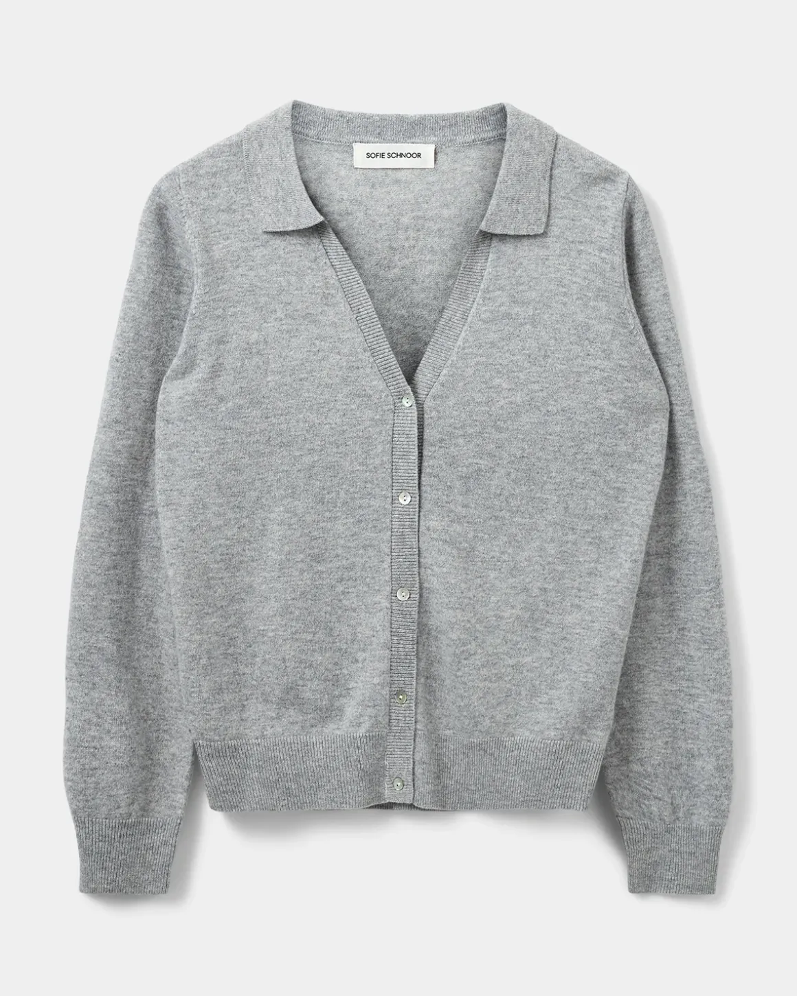 Soft SkylarSW wool cardigan. This cardigan has button closures down the front and a v-neckline with a collar. Crafted from wool, this cardigan offers both warmth and comfort and is ideal for adding a layer of coziness and style to any outfit.