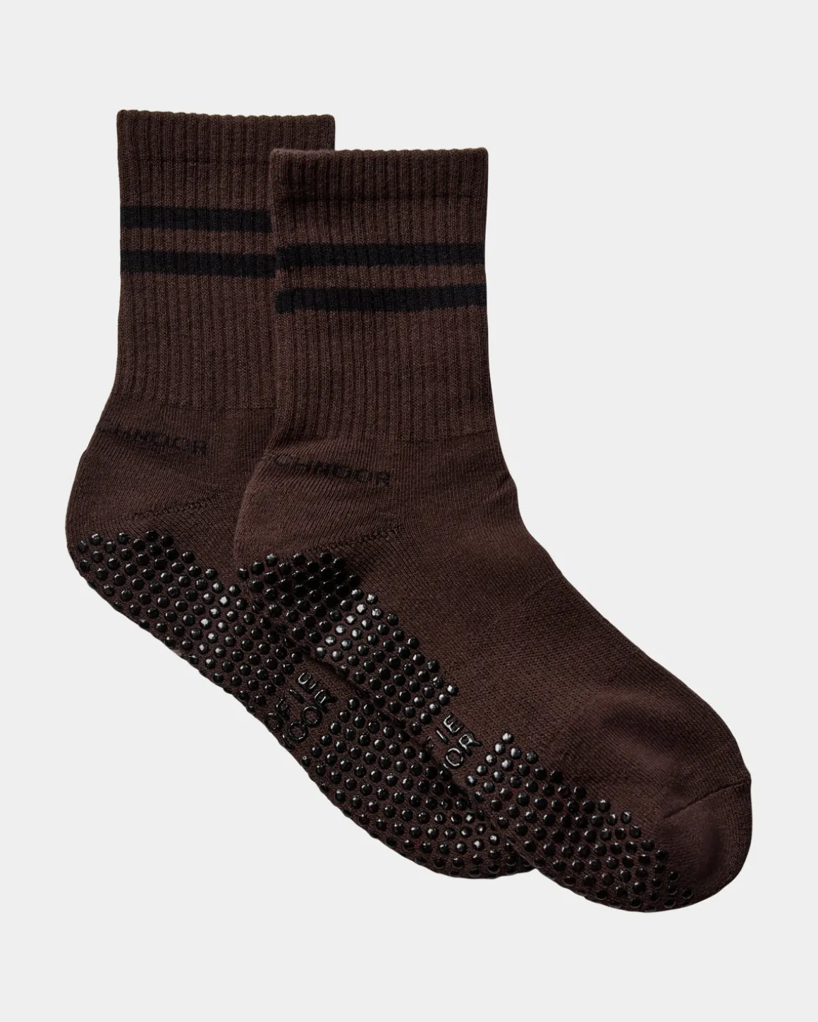 Combine style and functionality with these classic sports socks. The socks are equipped with non-slip soles that provide optimal grip on smooth surfaces, and the retro-inspired design with black stripes adds a stylish touch to your workout gear. Perfect for both training and relaxation.