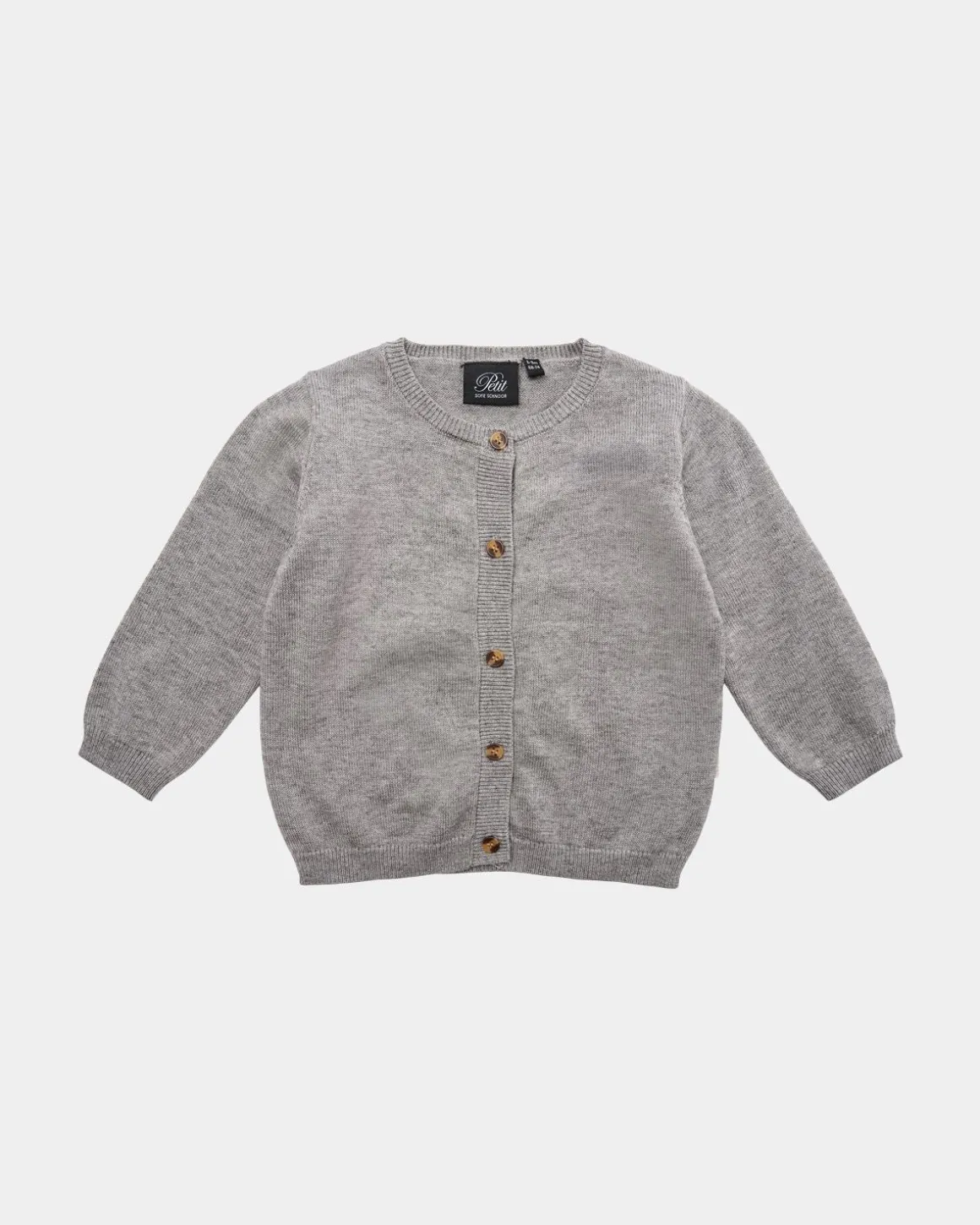Our classic Petit by Sofie Schnoor cardigan in grey melange in a soft quality with button closures and ribbed trim at all openings.