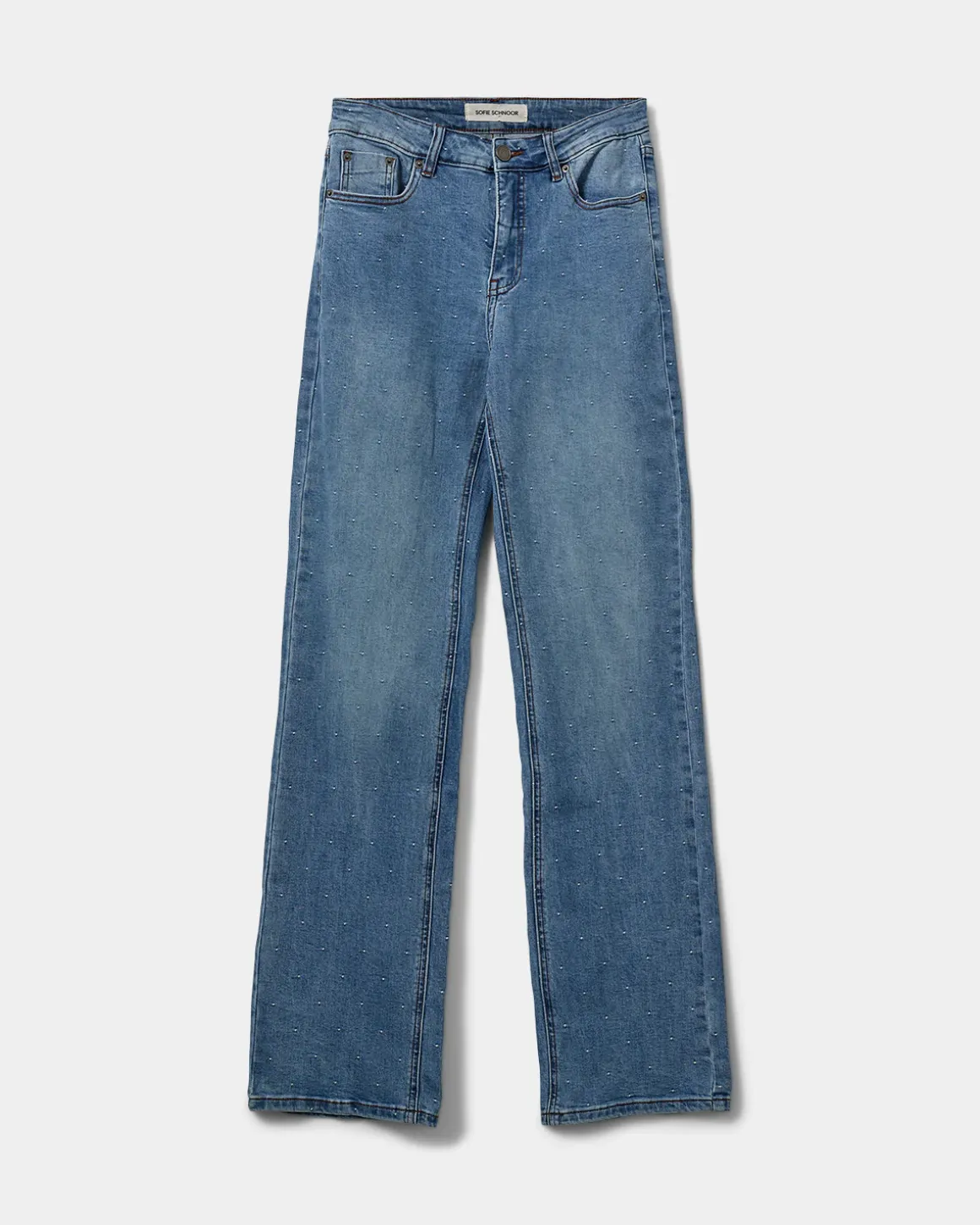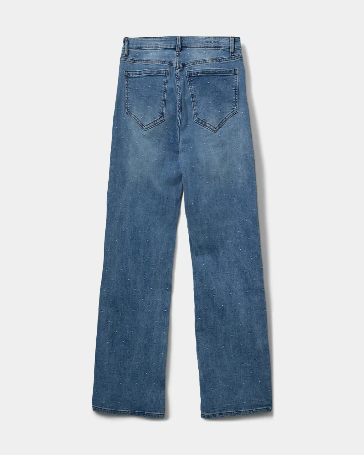 • The jeans are designed with small white embroidered dots and a classic 5-pocket design that combines functionality with style.
