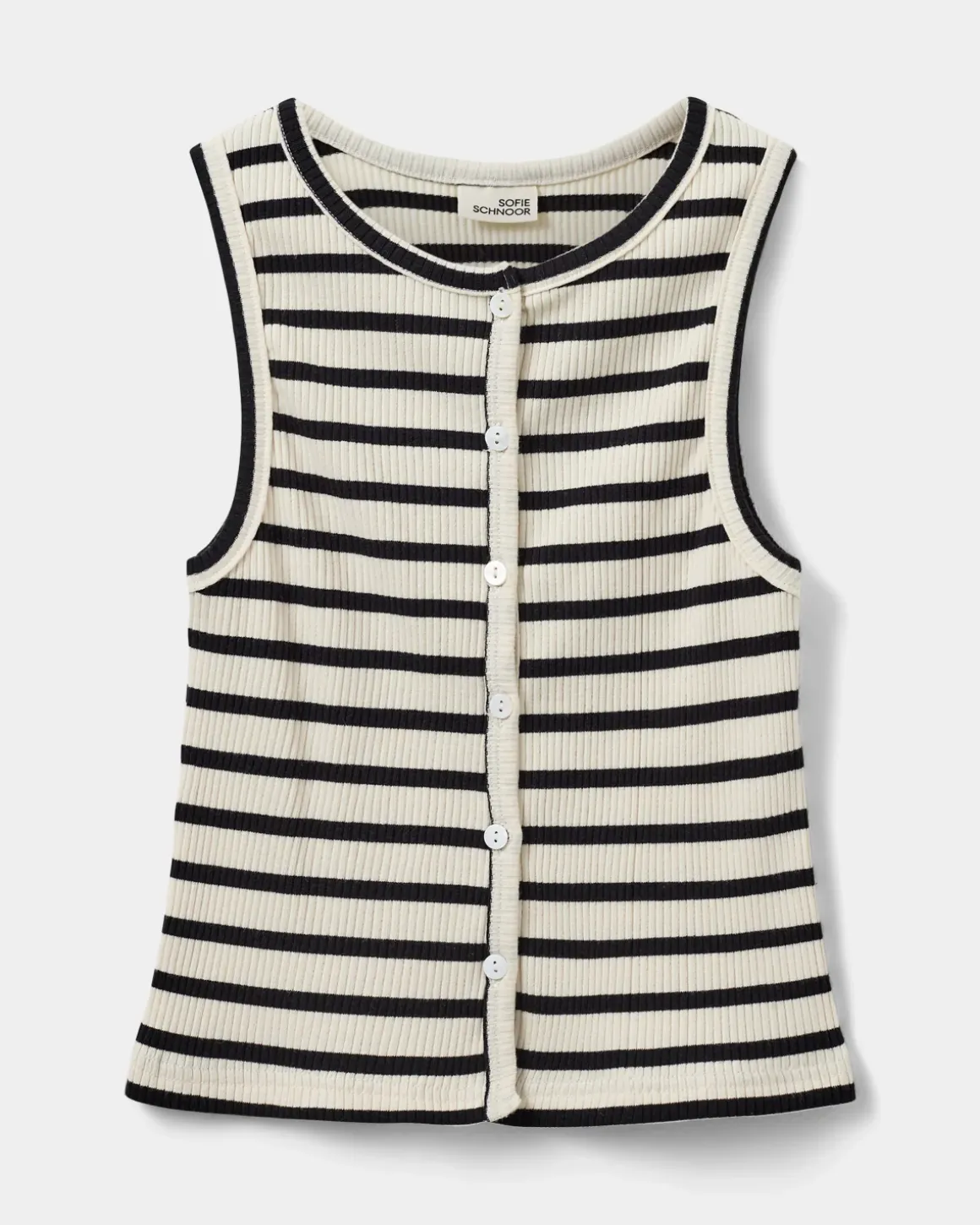 • Rib-knitted top with stripes and button closure at the front