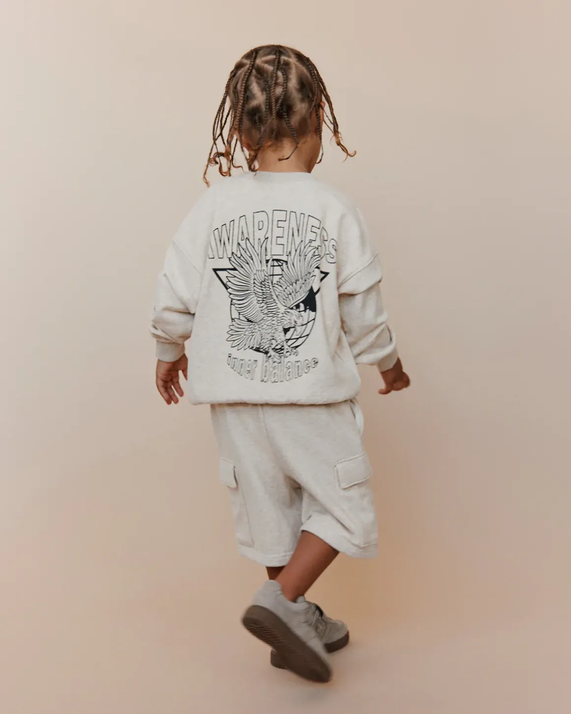 Beige melange sweatshirt with a graphic print of an eagle and a loose fit. Designed in 95% organic cotton and 5% elastane for a soft and flexible fit.