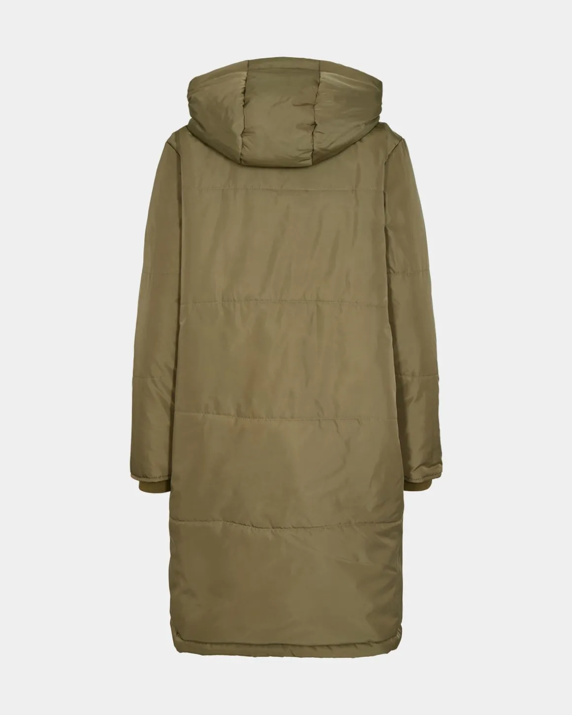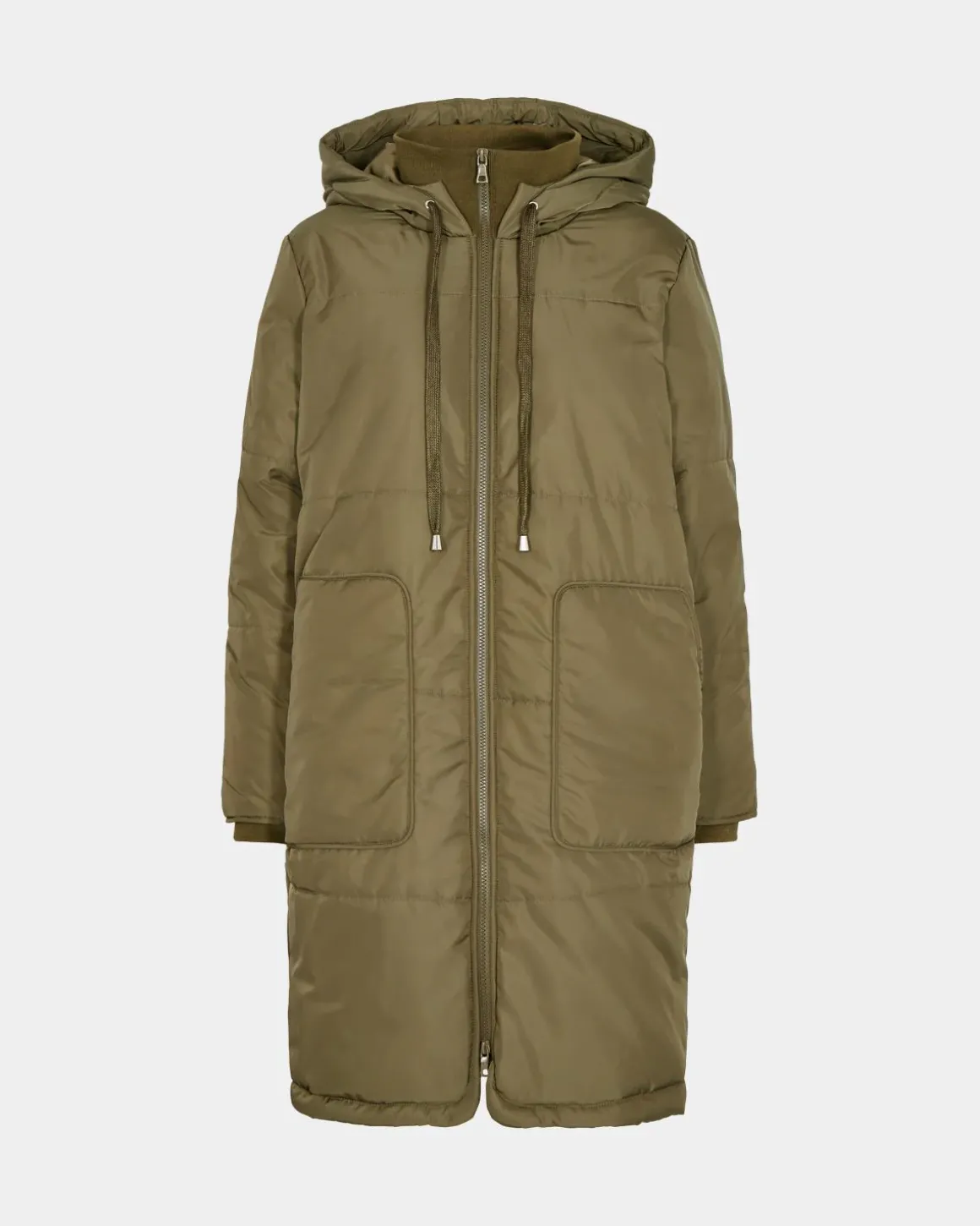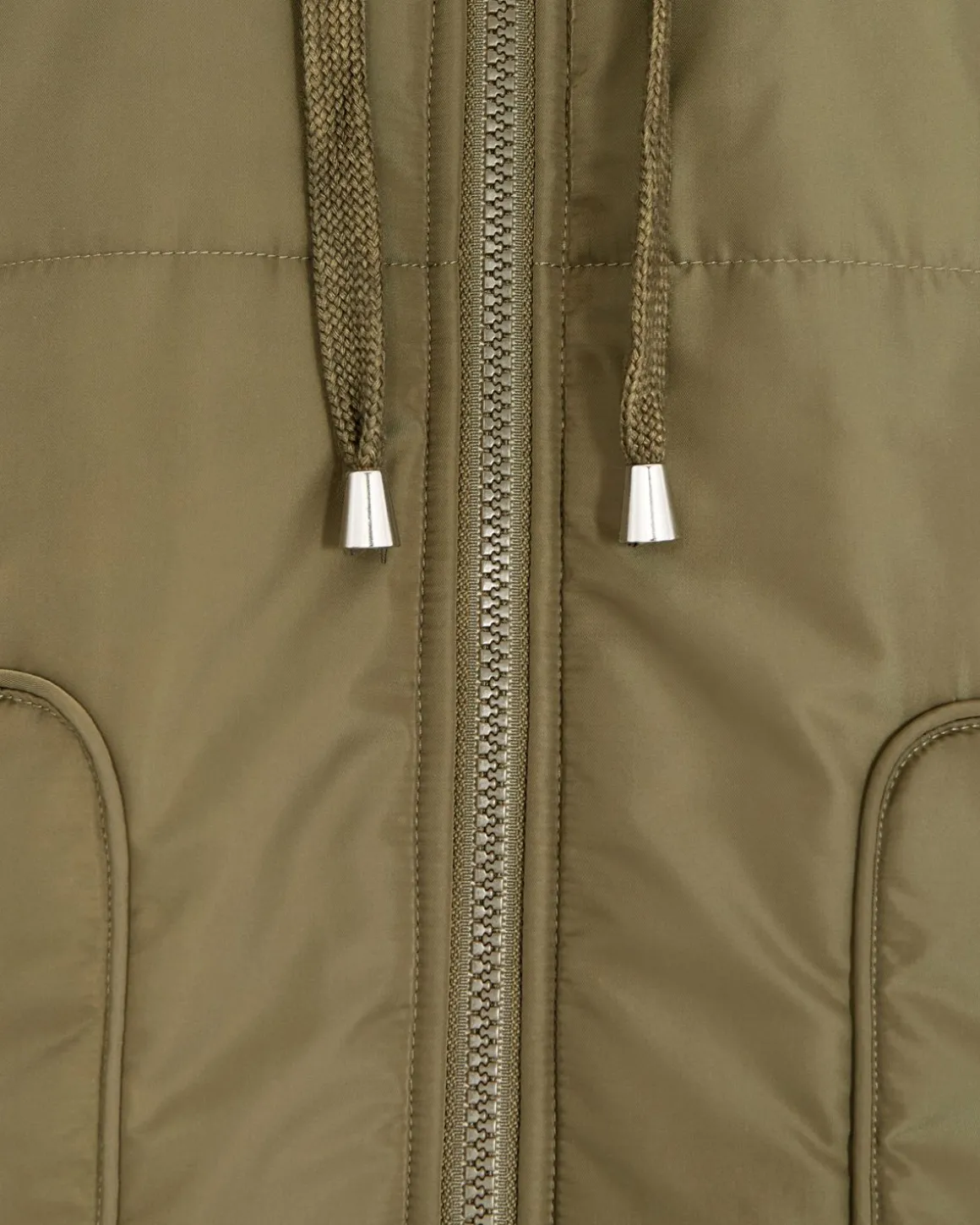 The jacket has comfortable edges at the sleeves and neck and two spacious pockets at the front.