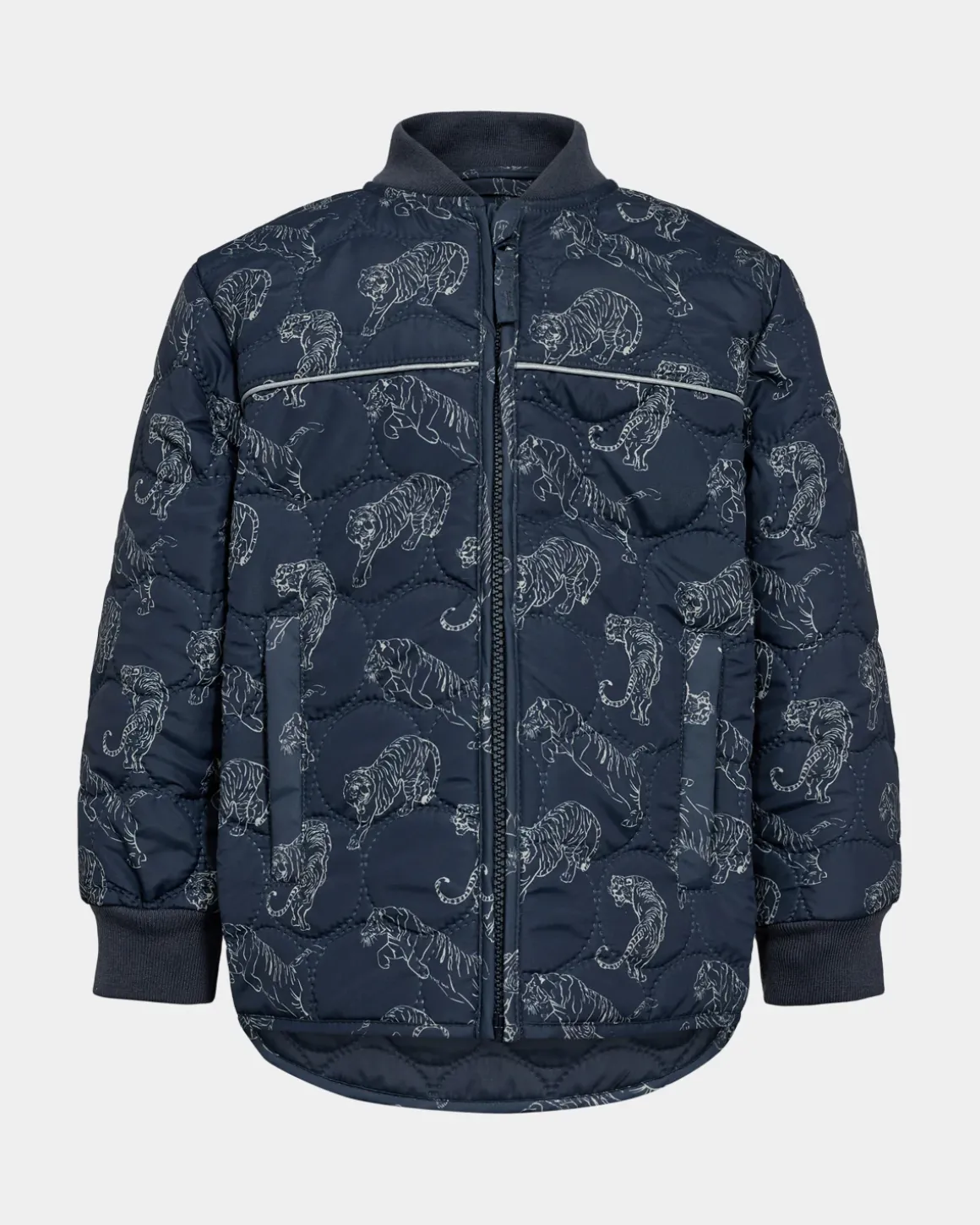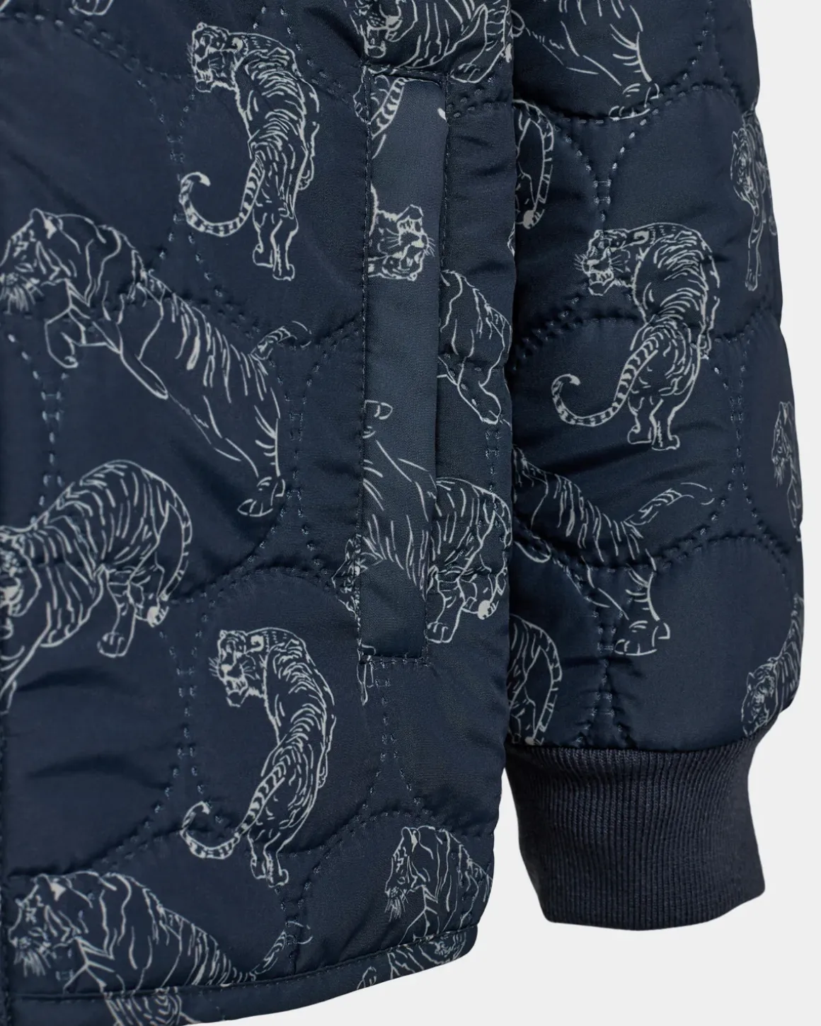 • Blue thermal jacket with tiger print.
