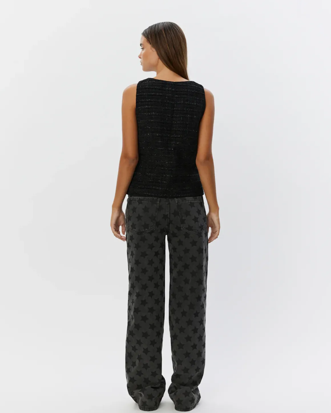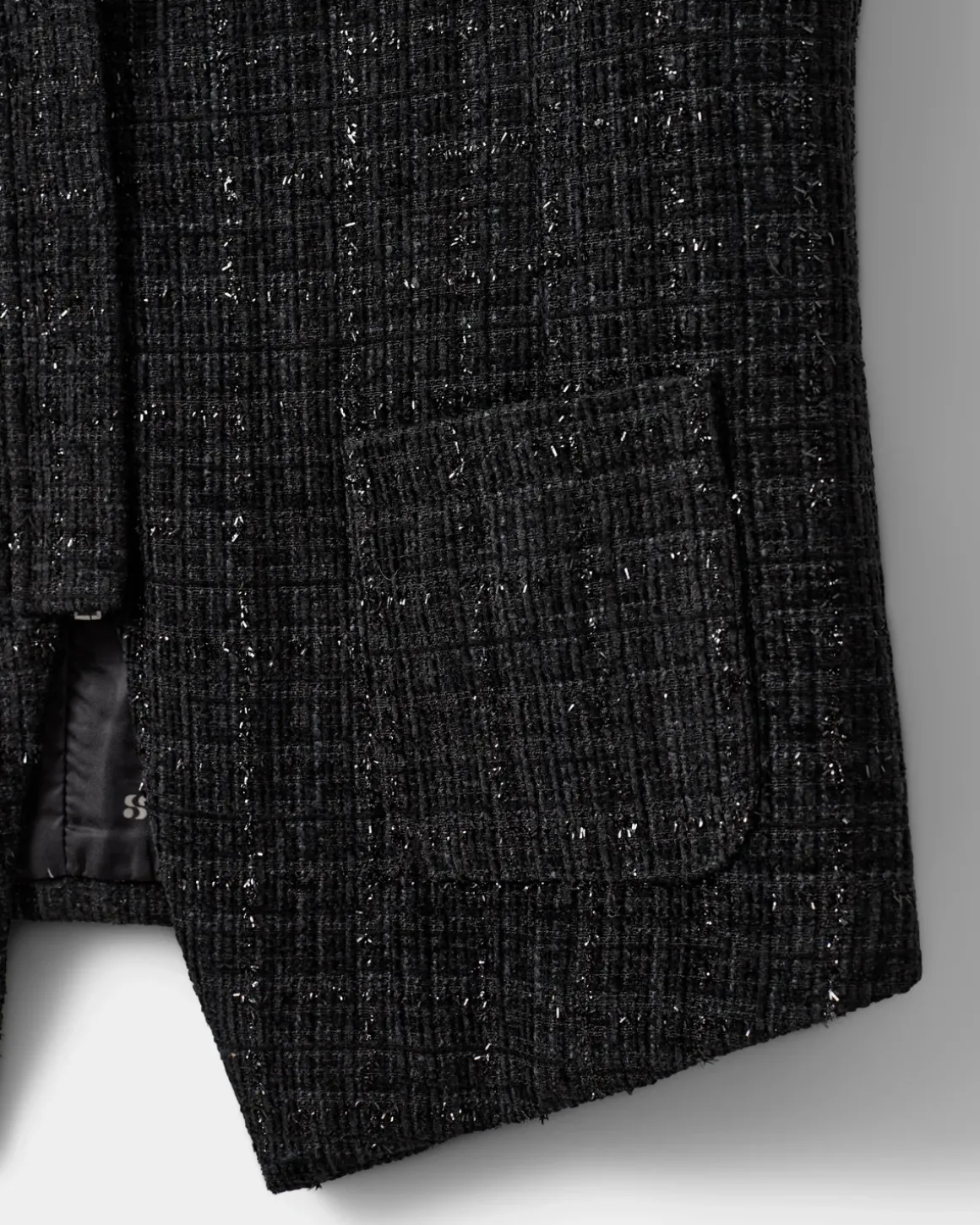 • The vest is designed with silver glitter details that create an elegant and sophisticated effect.