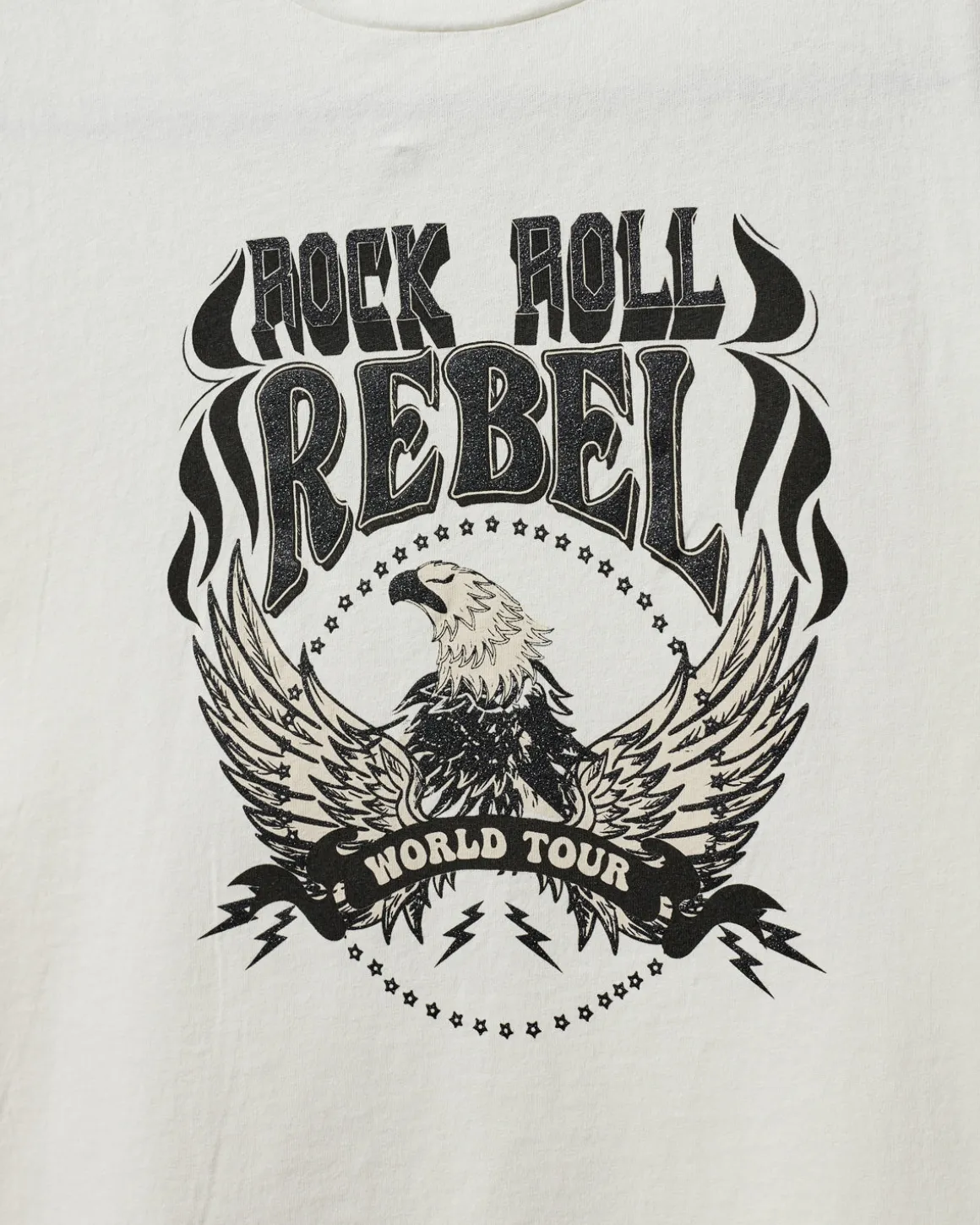• Designed with a graphic print and the text ”Rock Roll Rebel” printed on the front.