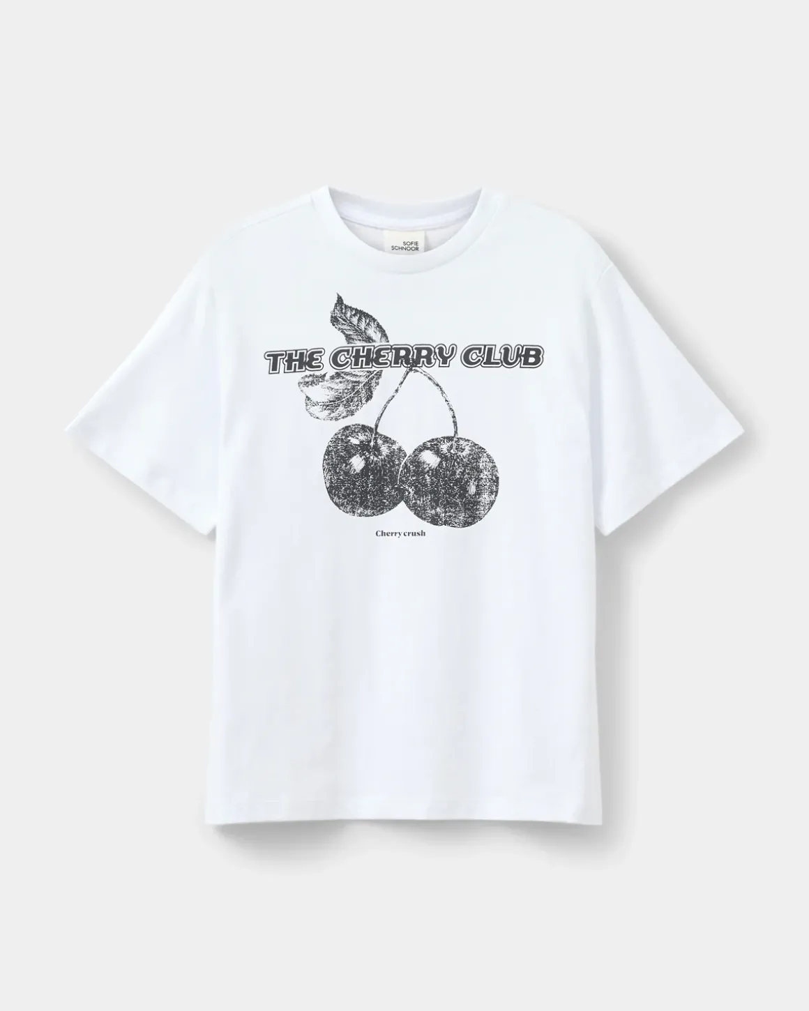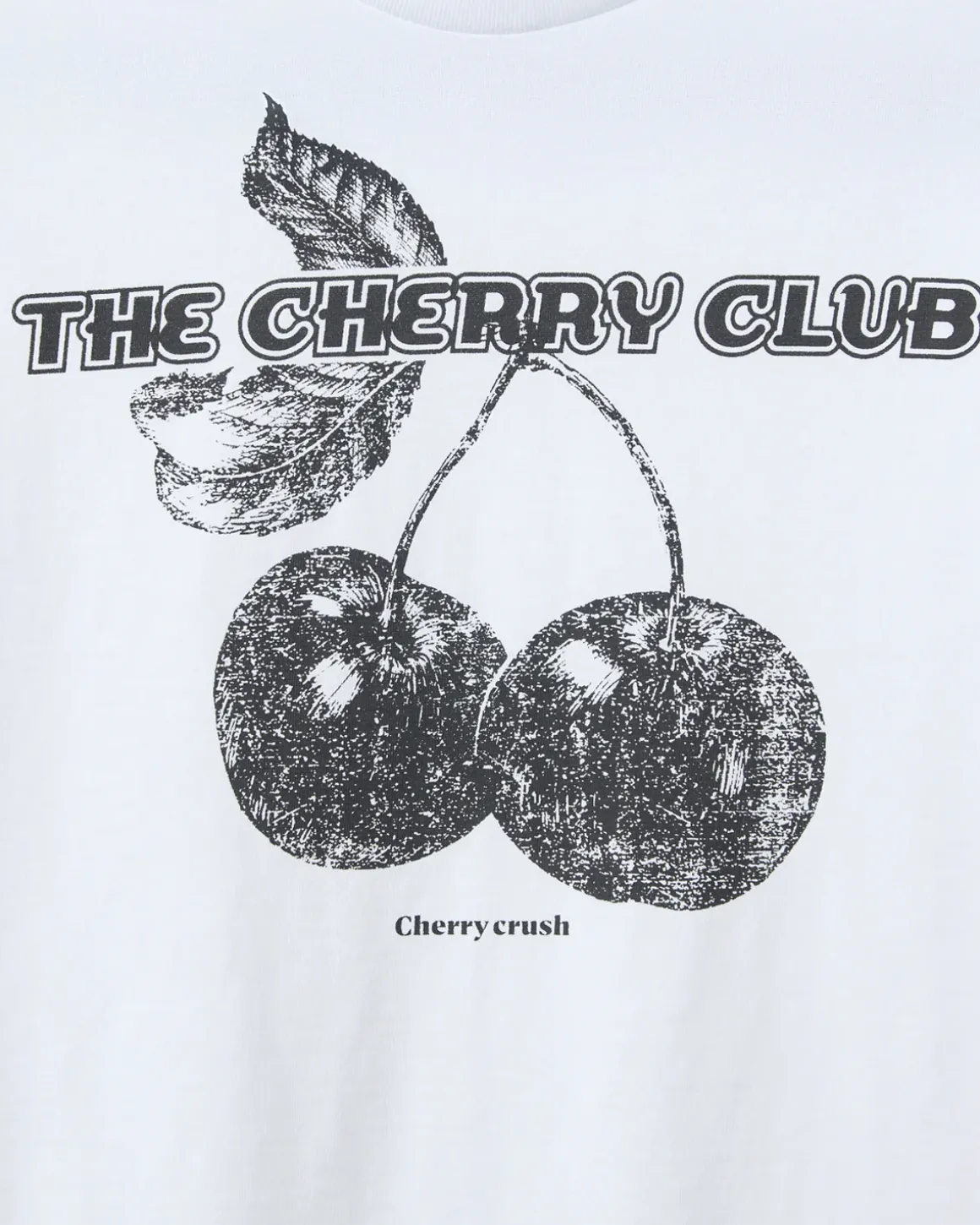 Classic white loose fit T-shirt with round neckline and black cherry print plus the text ”THE CHERRY CLUB”. Designed in 100% cotton.